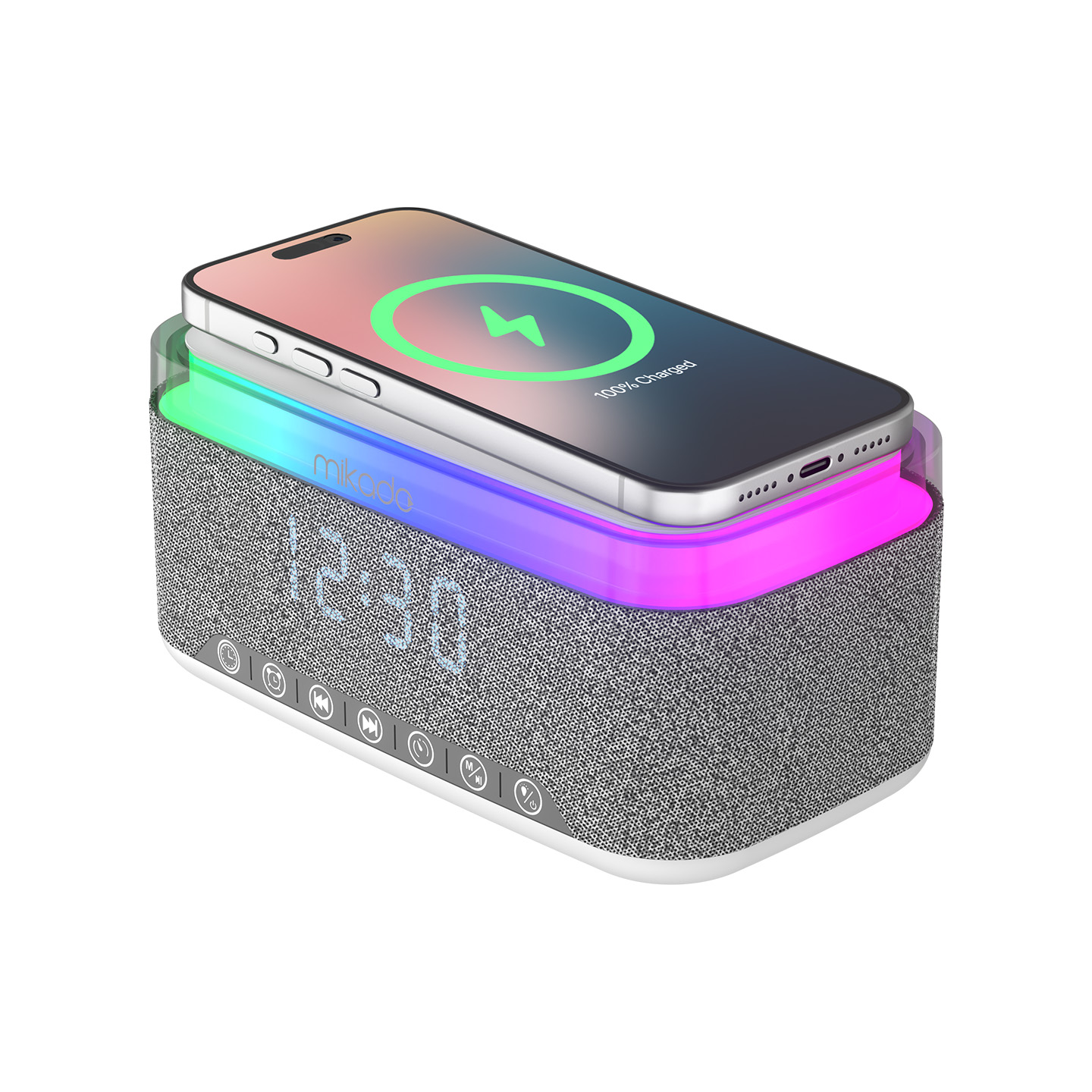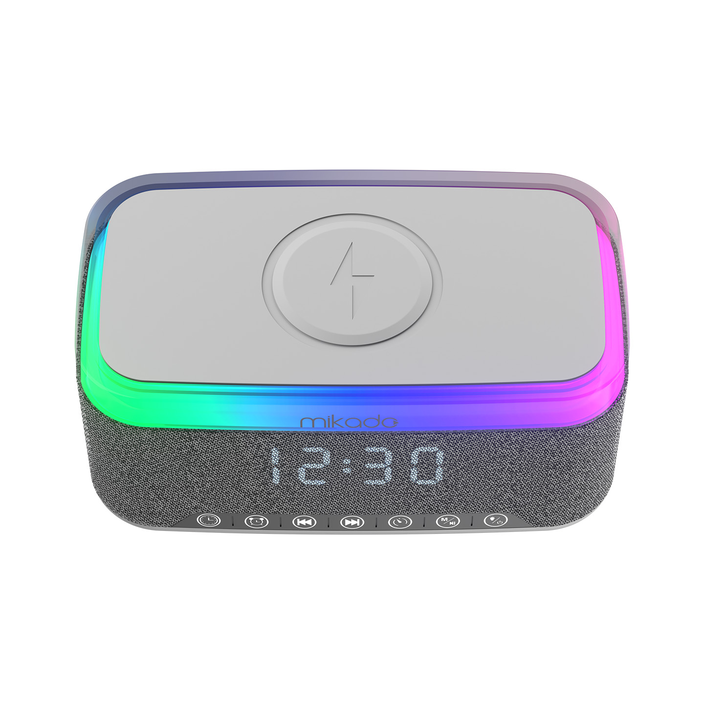 Mikado MD-W10 1200mAh 10W Gri BT, USB, Kablosuz Şarjlı RGB-Gece Lambası Özellikli Alarmlı Saat Speaker
