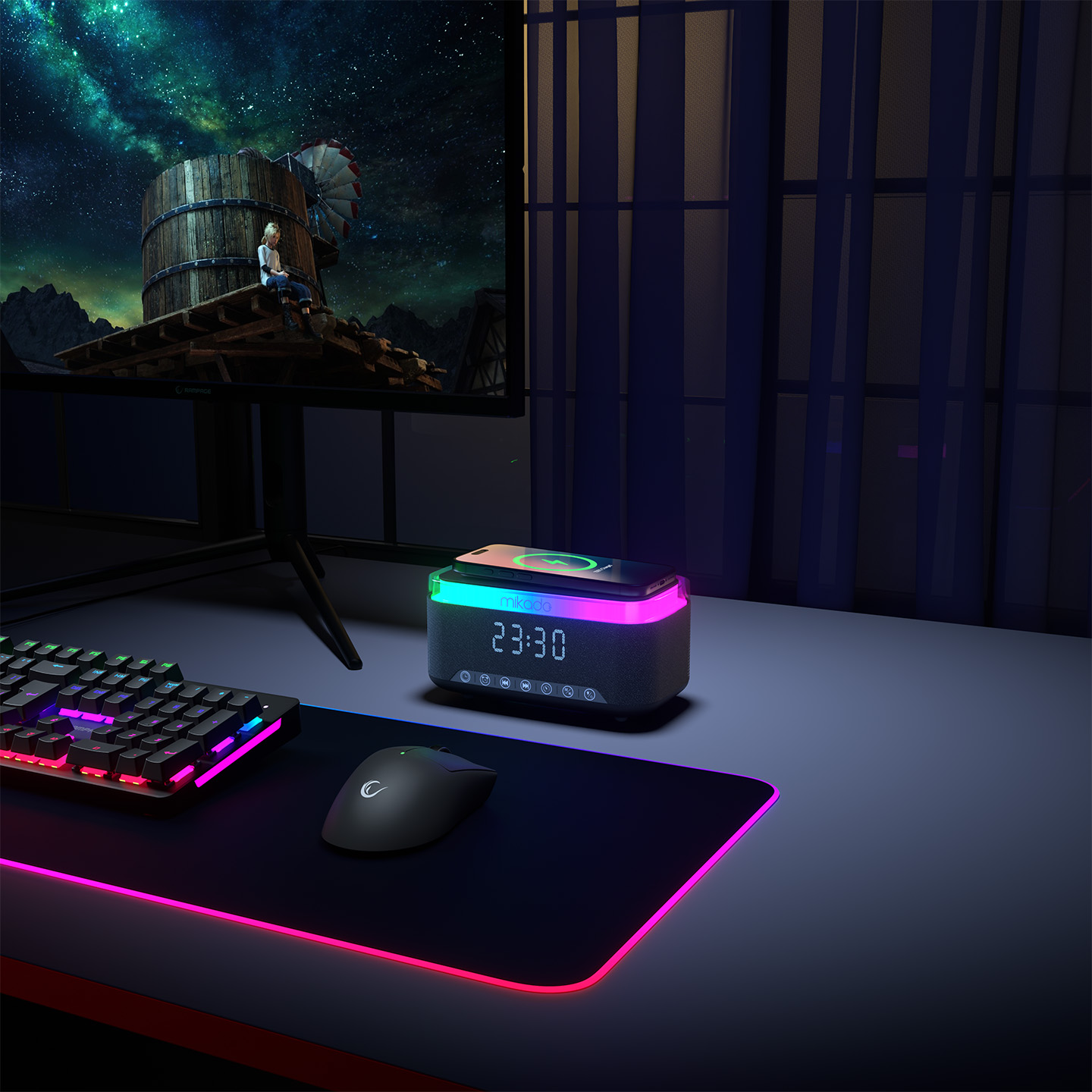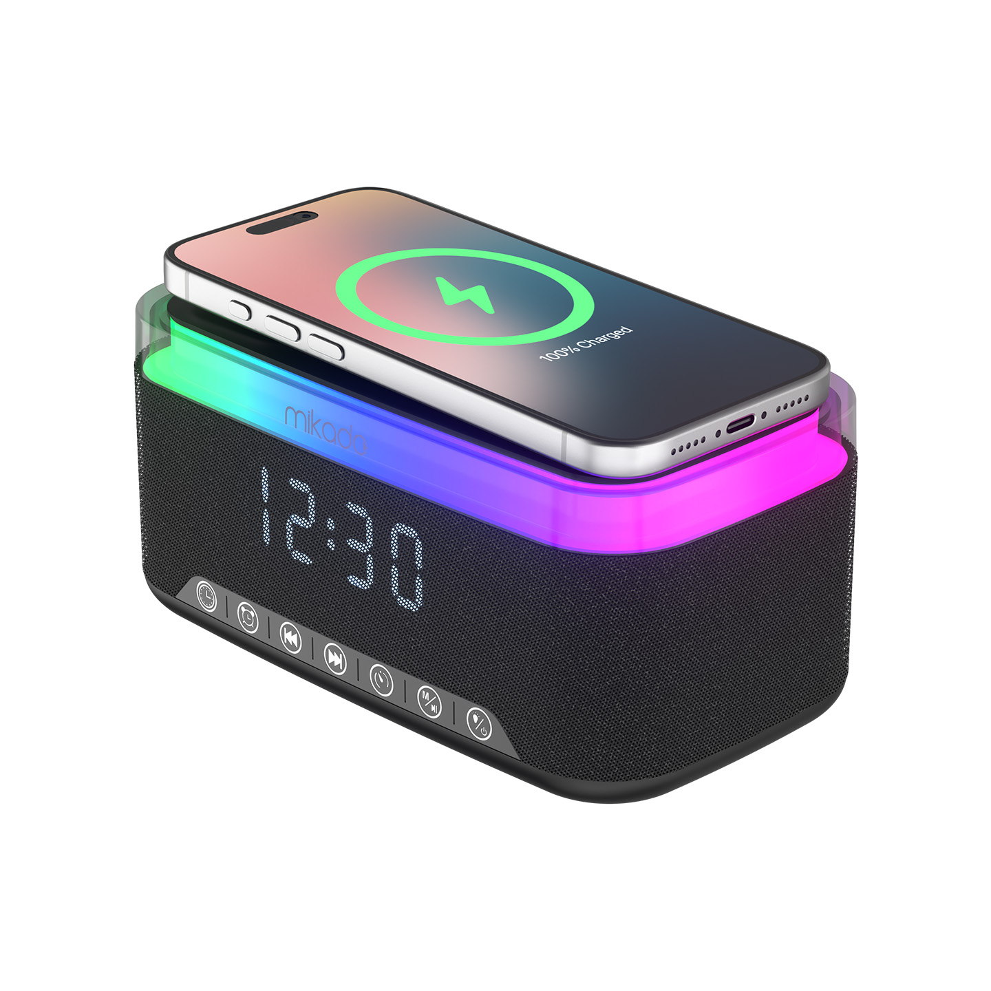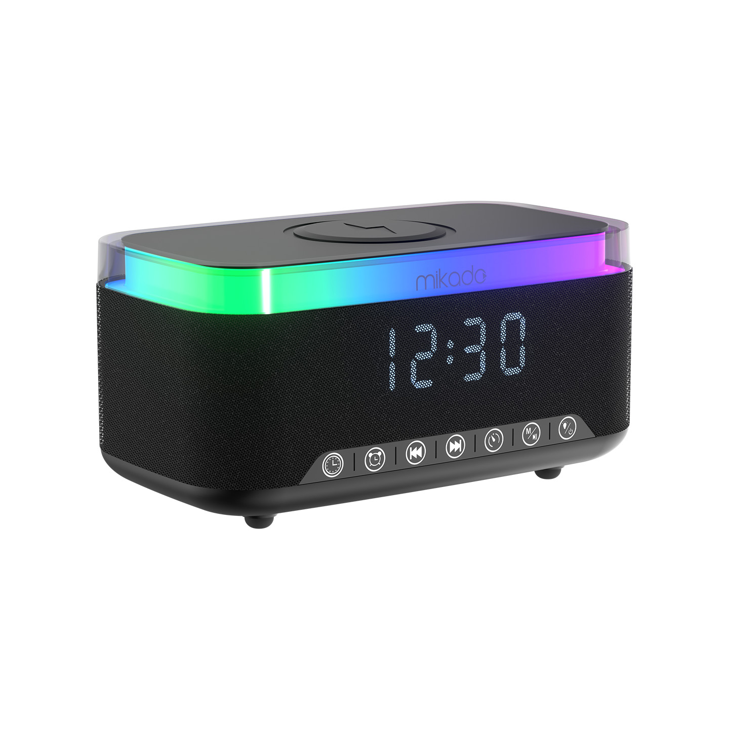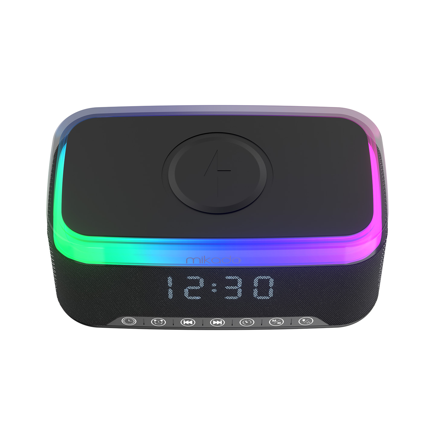 Mikado MD-W9 1200mAh 10W Siyah Bluetooth-Usb-Kablosuz Şarj RGB-Gece Lambası Özellikli FM Destekli Alarmlı Speaker
