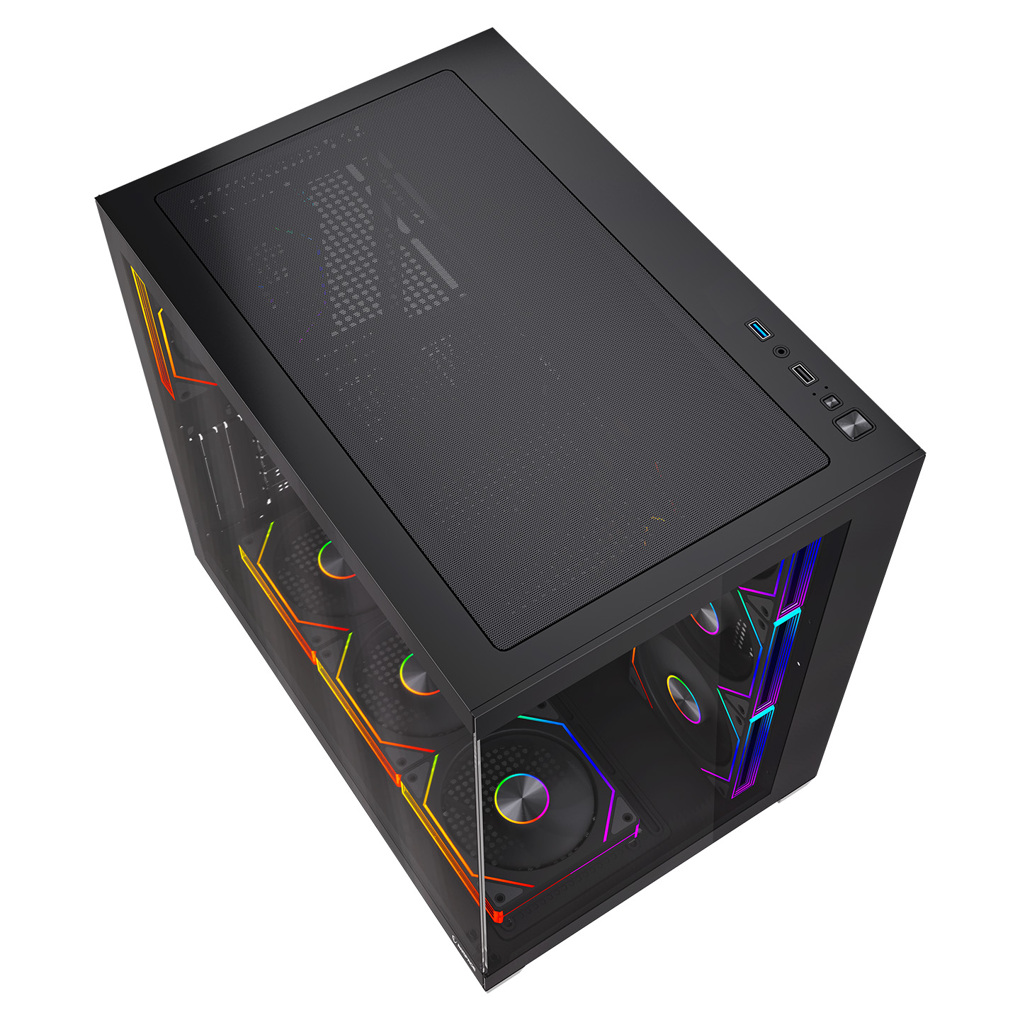 Rampage ARES V2 Temperli Camlı Siyah 7*12cm ARGB Pwm Fan + Kumanda ATX Mid-T Gaming Oyuncu Kasası