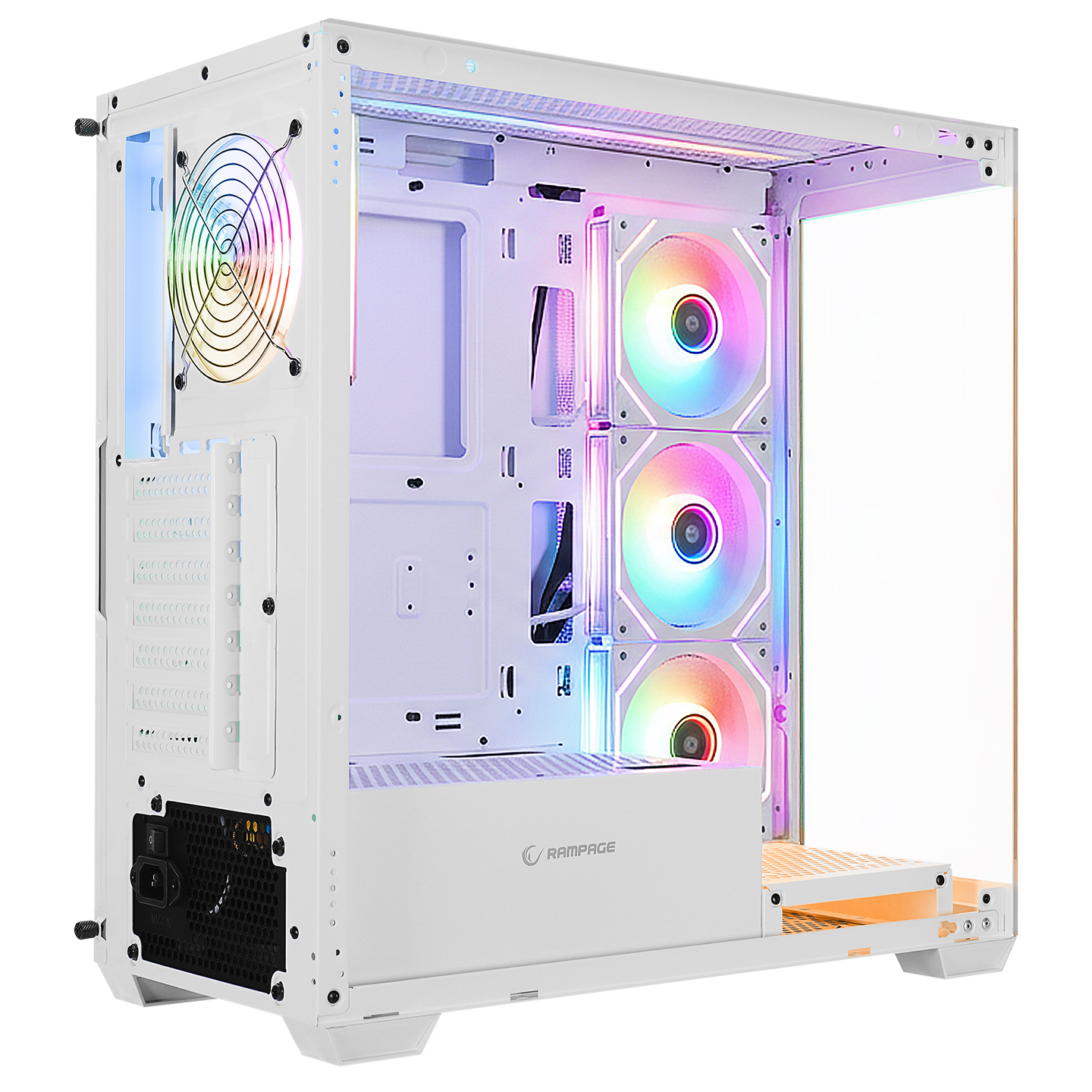 Rampage CRUISER V2 Mesh Temperli Camlı 750W 80 Plus Bronze Beyaz 4*12cm ARGB Fan Oyuncu Kasası