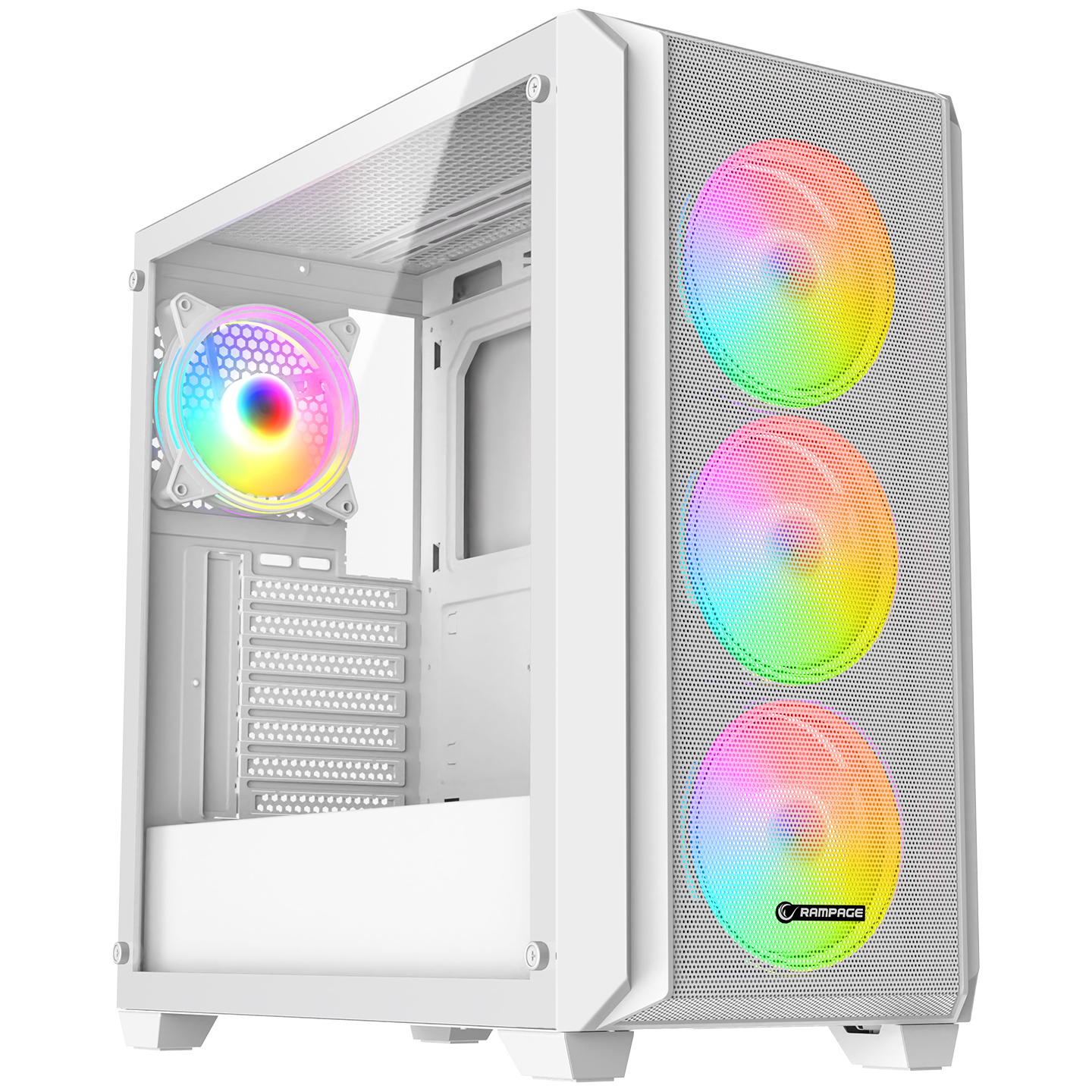Rampage ELYSIAN MESH 850W 80 Plus Bronze 4*12cm ARGB Fan Temperli Camlı Mid-T Beyaz Oyuncu Kasası