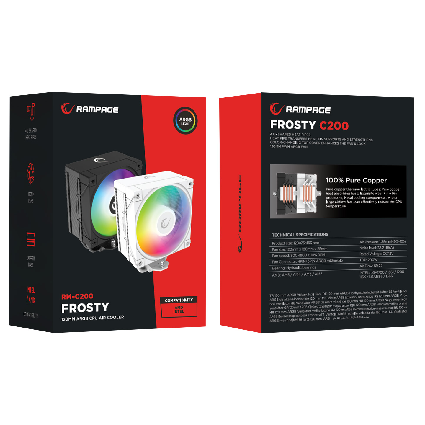 Rampage FROSTY RM-C200 AM5/LGA1851 ARGB Fan 120mm 87 CFM TDP180W Beyaz CPU Fan