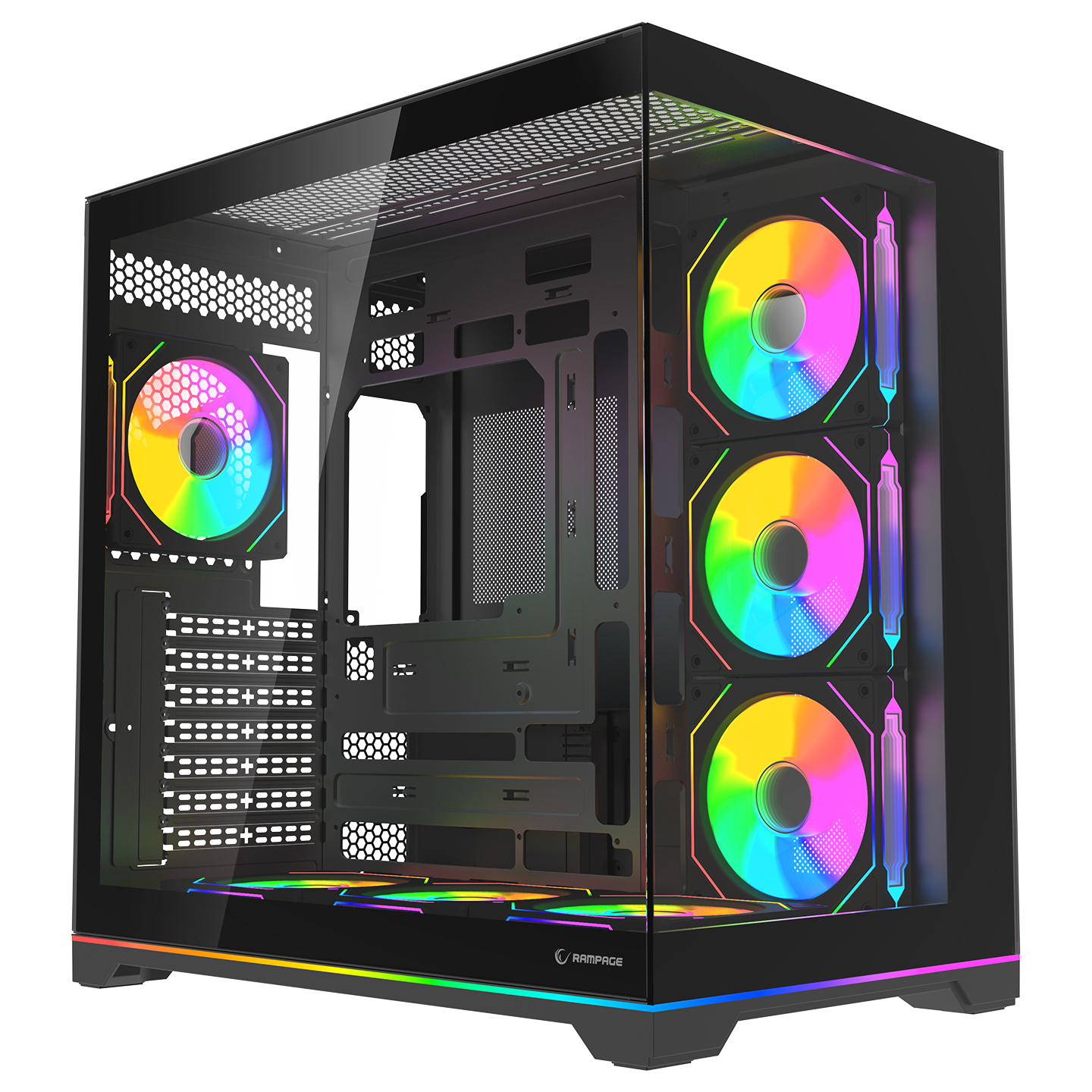 Rampage KAIZER Kumandalı 7*12cm ARGB Fan+Kontrolcü PWM Fanlı ATX/M-ATX Siyah Oyuncu Kasası