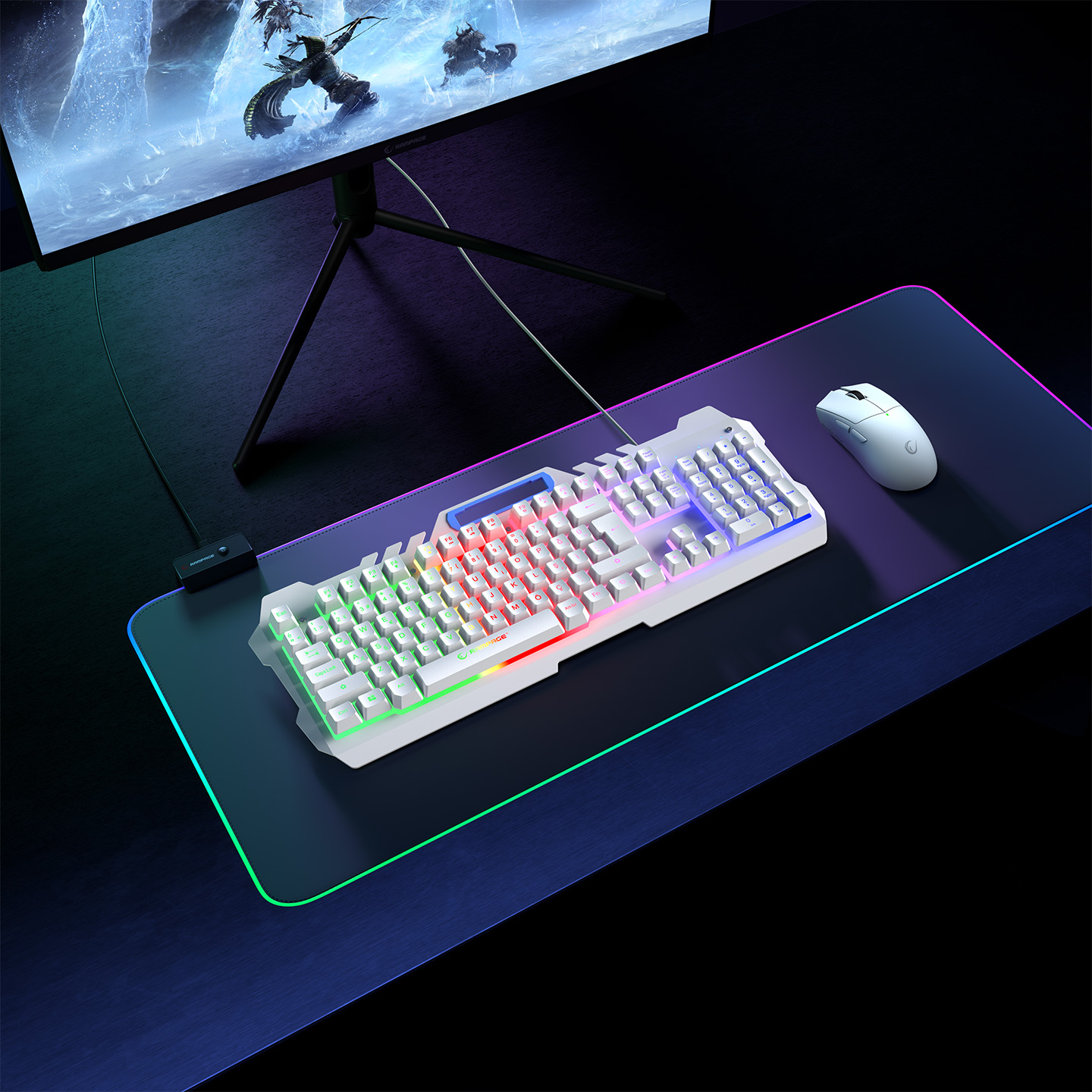 Rampage KB-R57 X-JAMMER Gökkuşağı Aydınlatmalı USB Beyaz Tam Türkçe Gaming Oyuncu Klavyesi