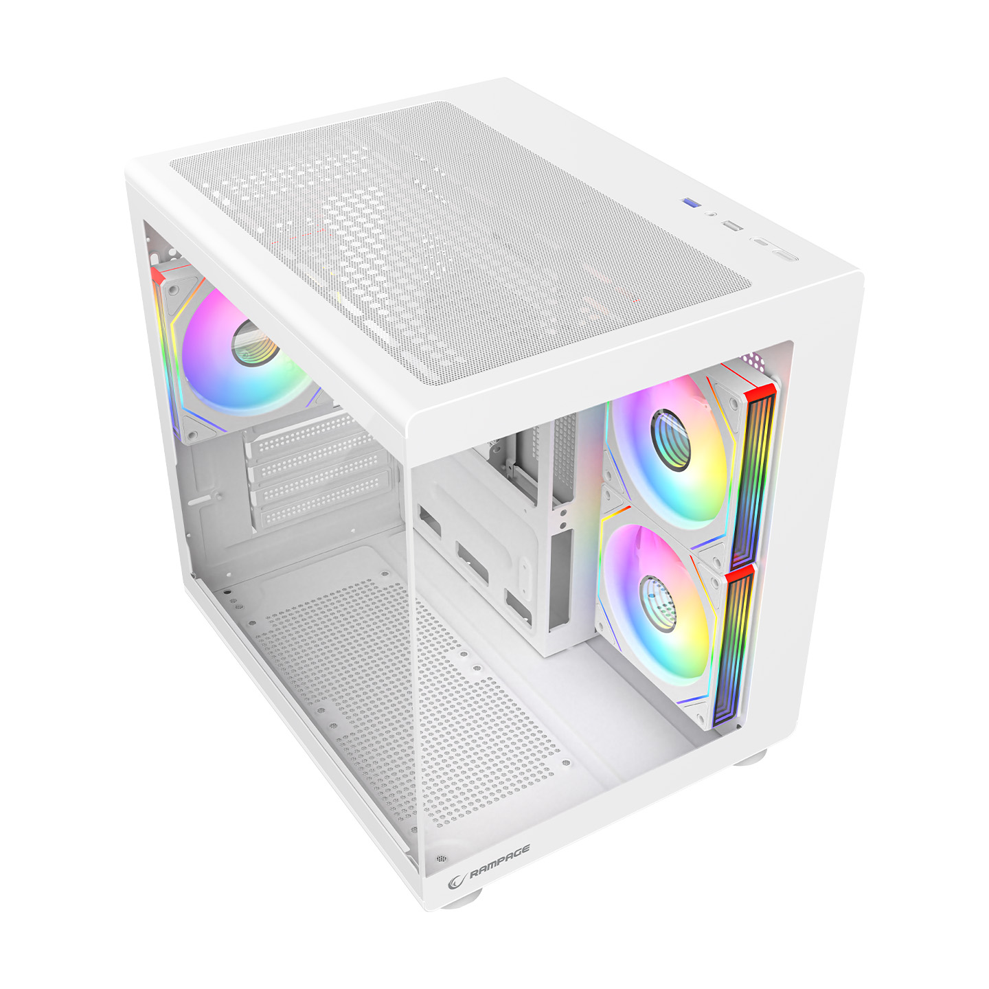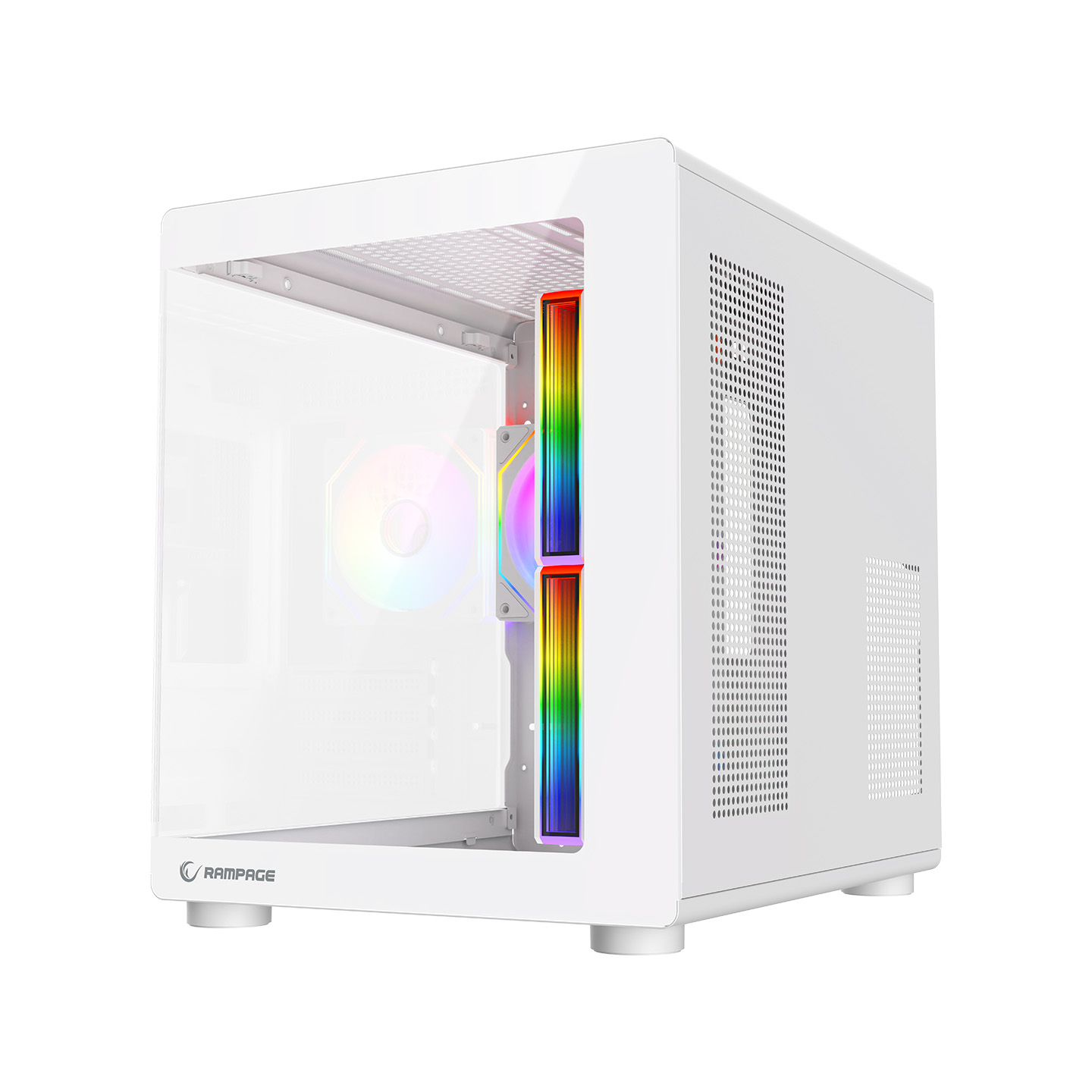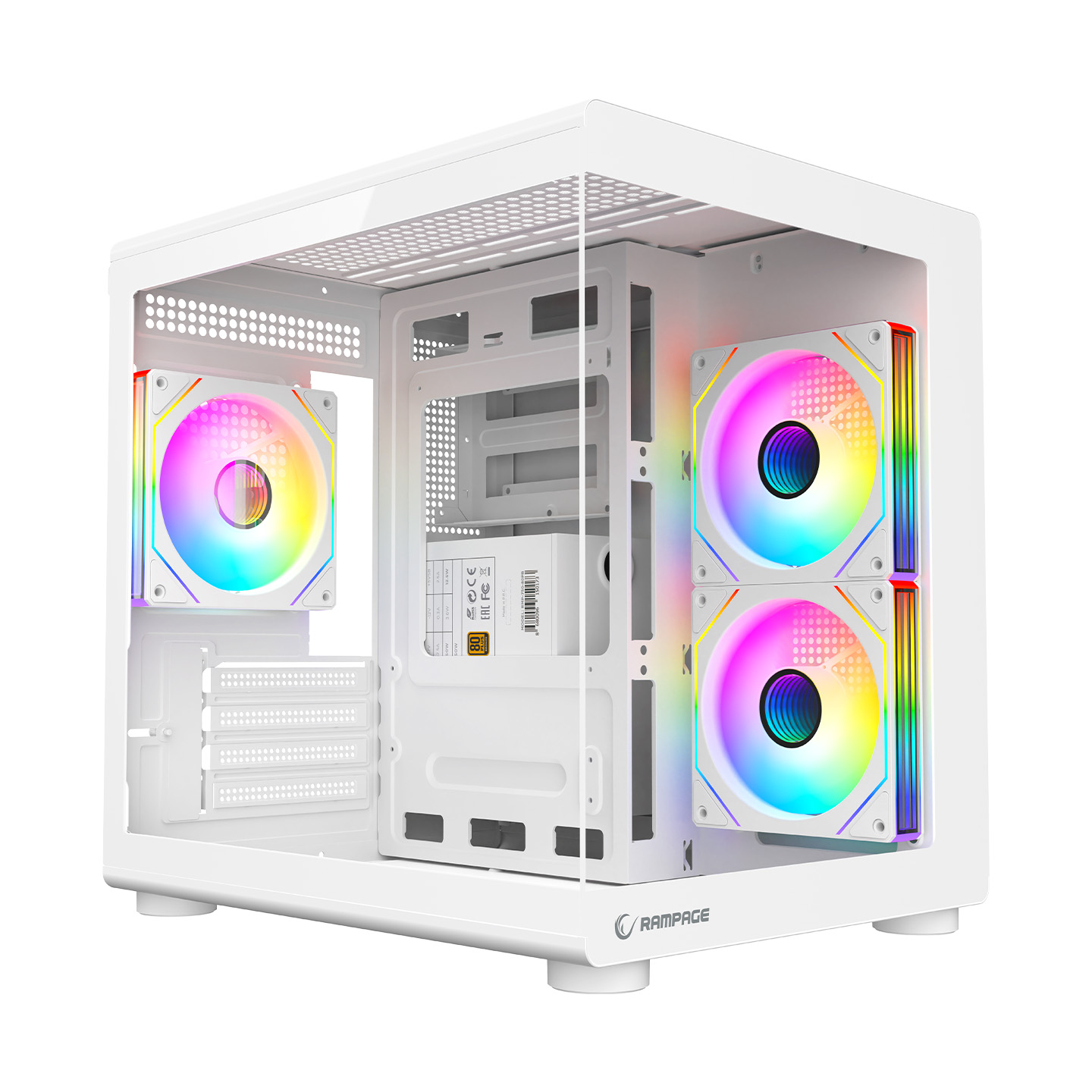 Rampage MINID V1 750W 80 Plus Bronze M-ATX Temperli Camlı 3*12cm ARGB Fan Beyaz Oyuncu Kasası