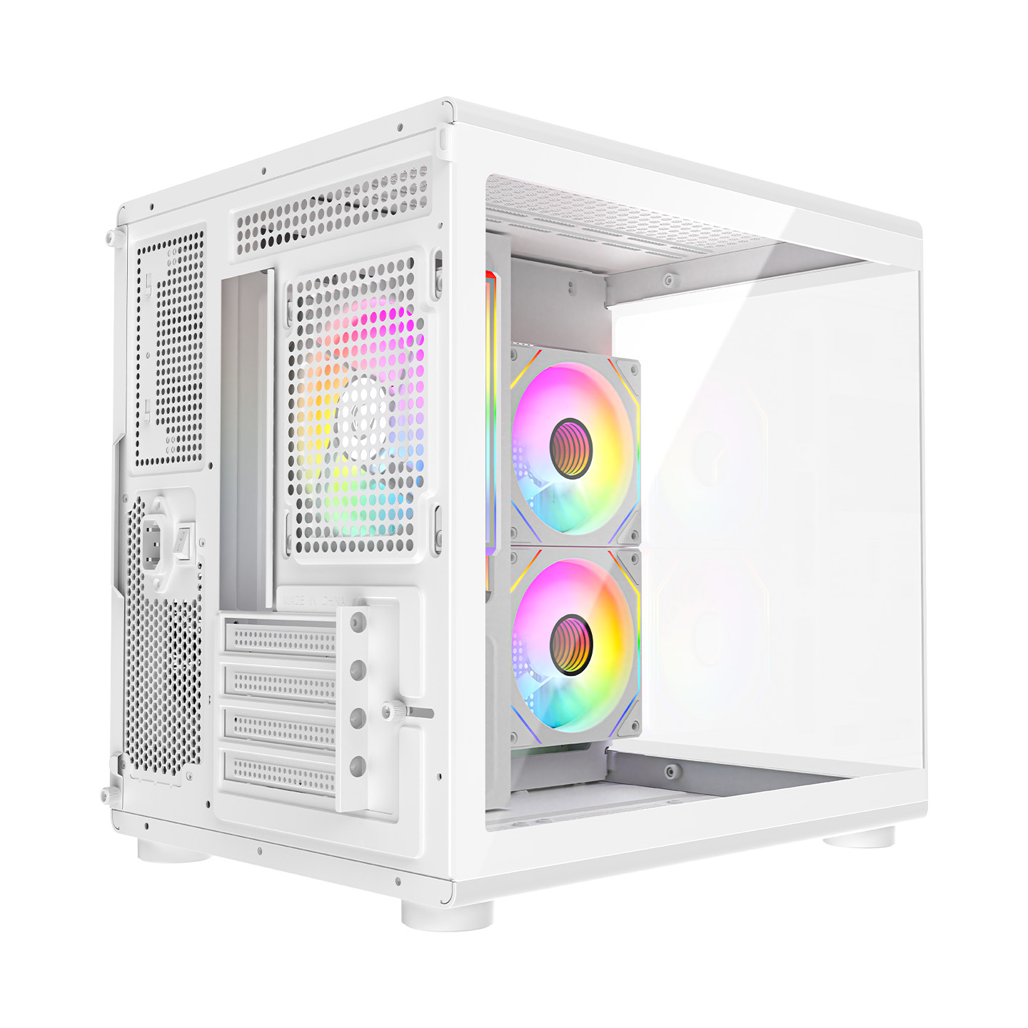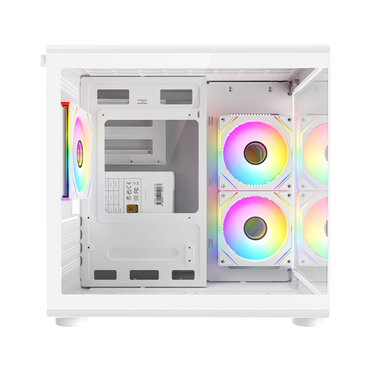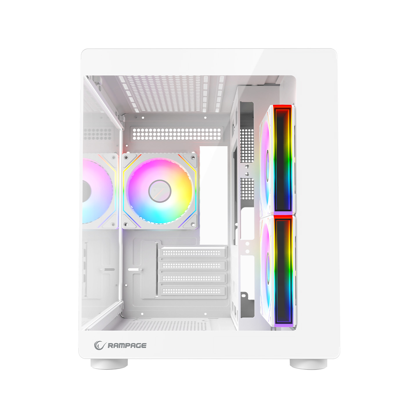 Rampage MINID V1 750W 80 Plus Bronze M-ATX Temperli Camlı 3*12cm ARGB Fan Beyaz Oyuncu Kasası