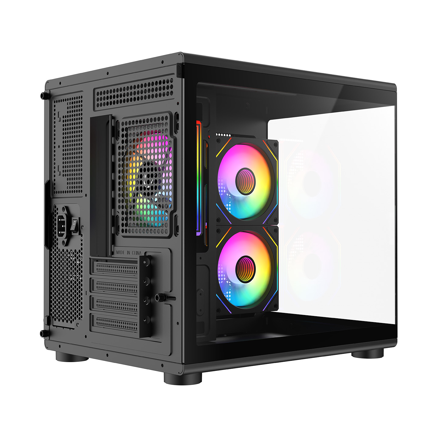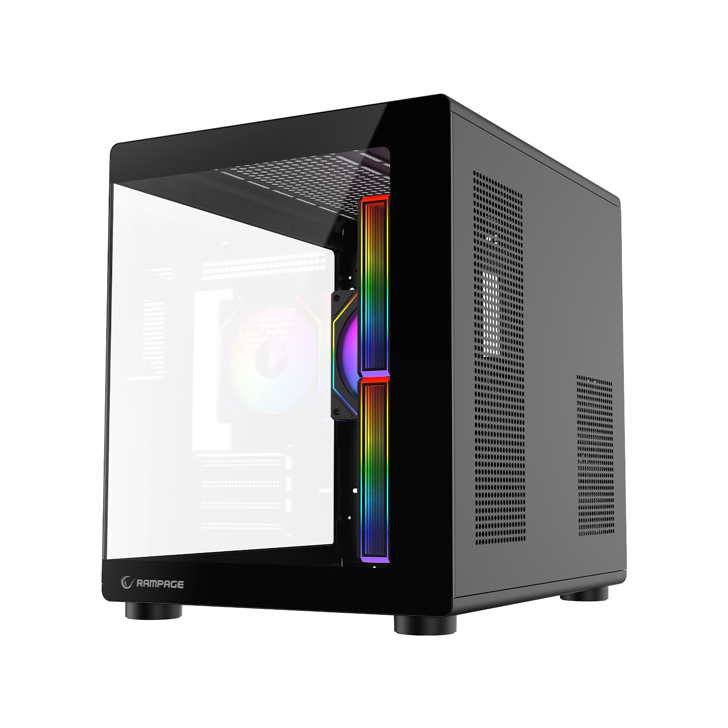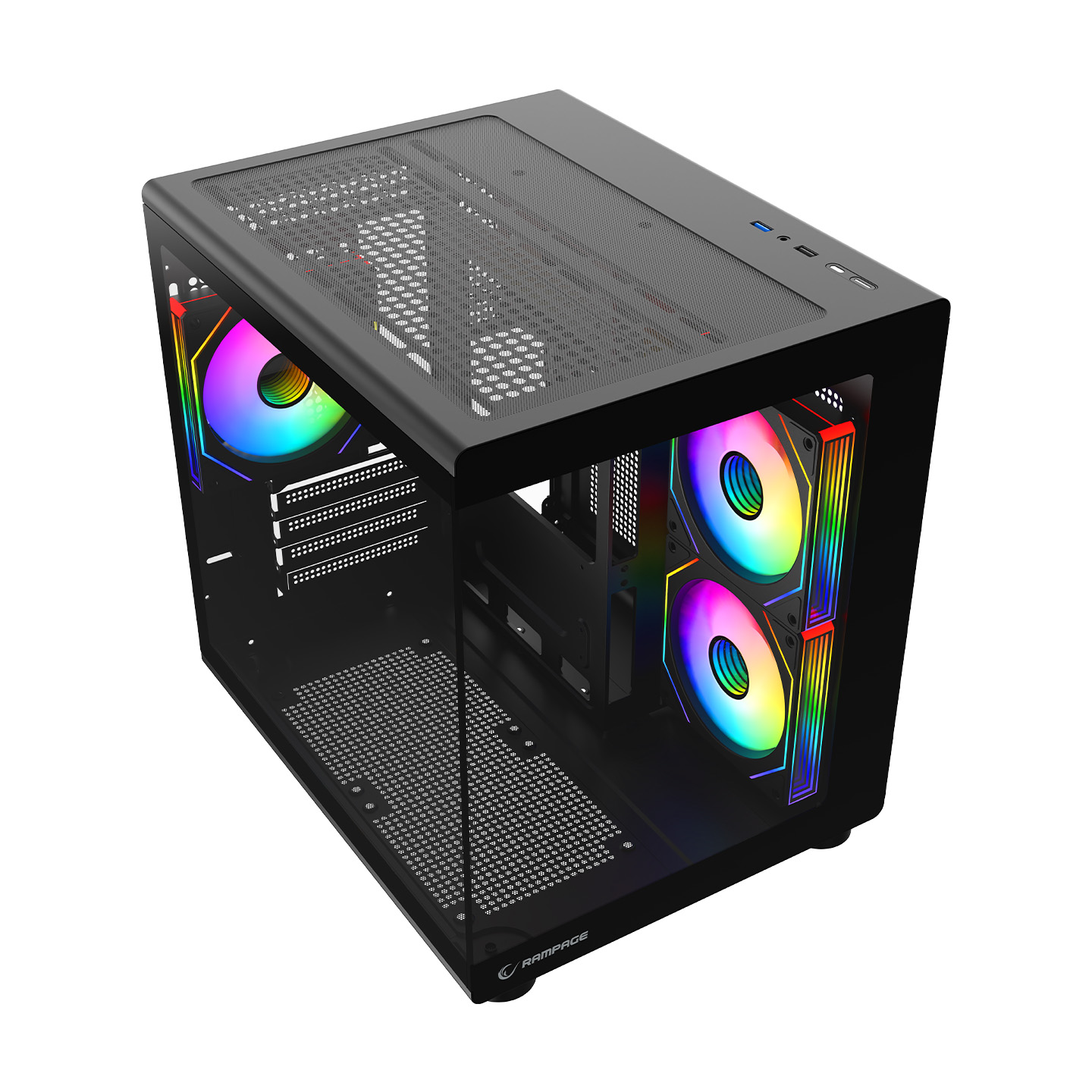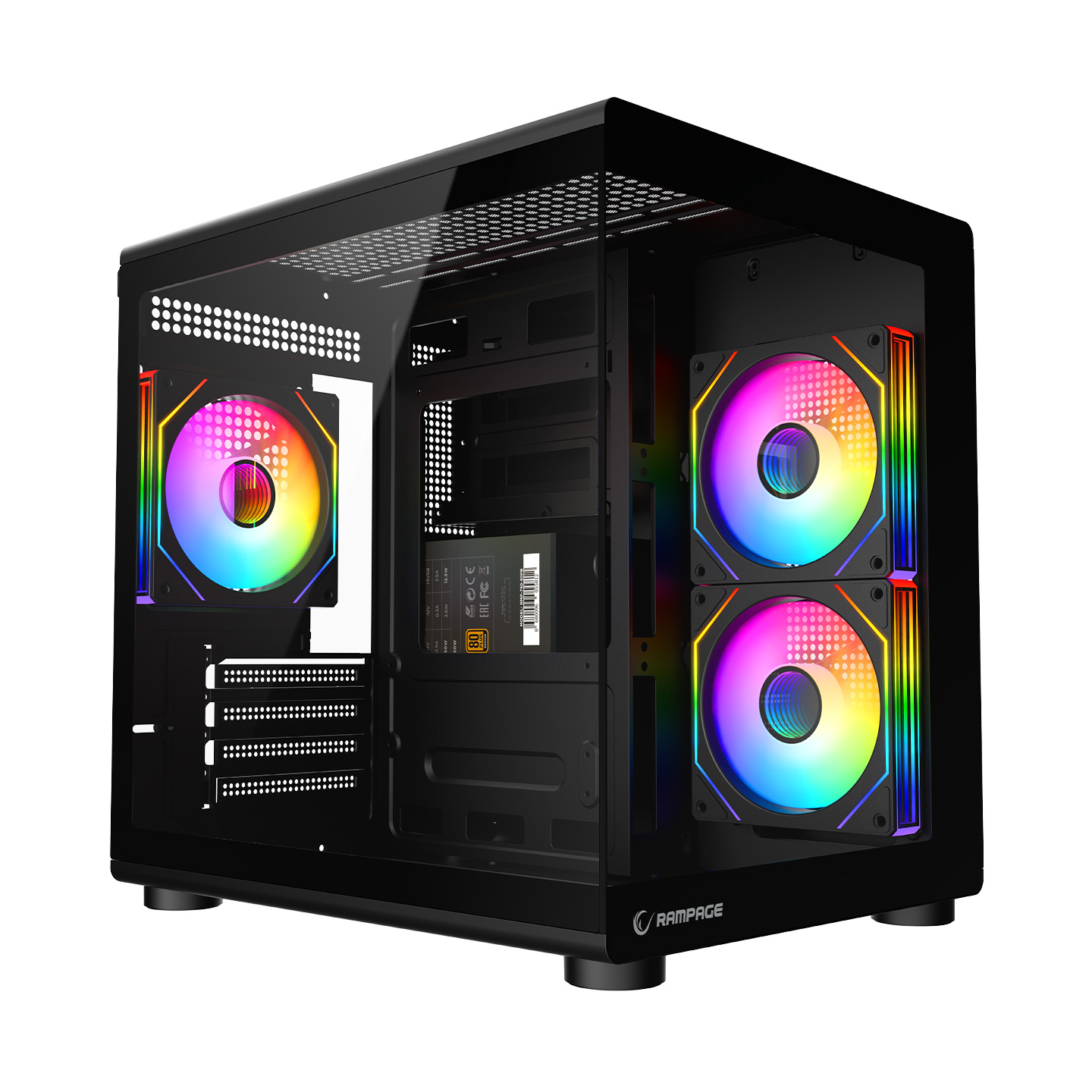 Rampage MINID V1 750W 80 Plus Bronze M-ATX Temperli Camlı 3*12cm ARGB Fan Siyah Oyuncu Kasası