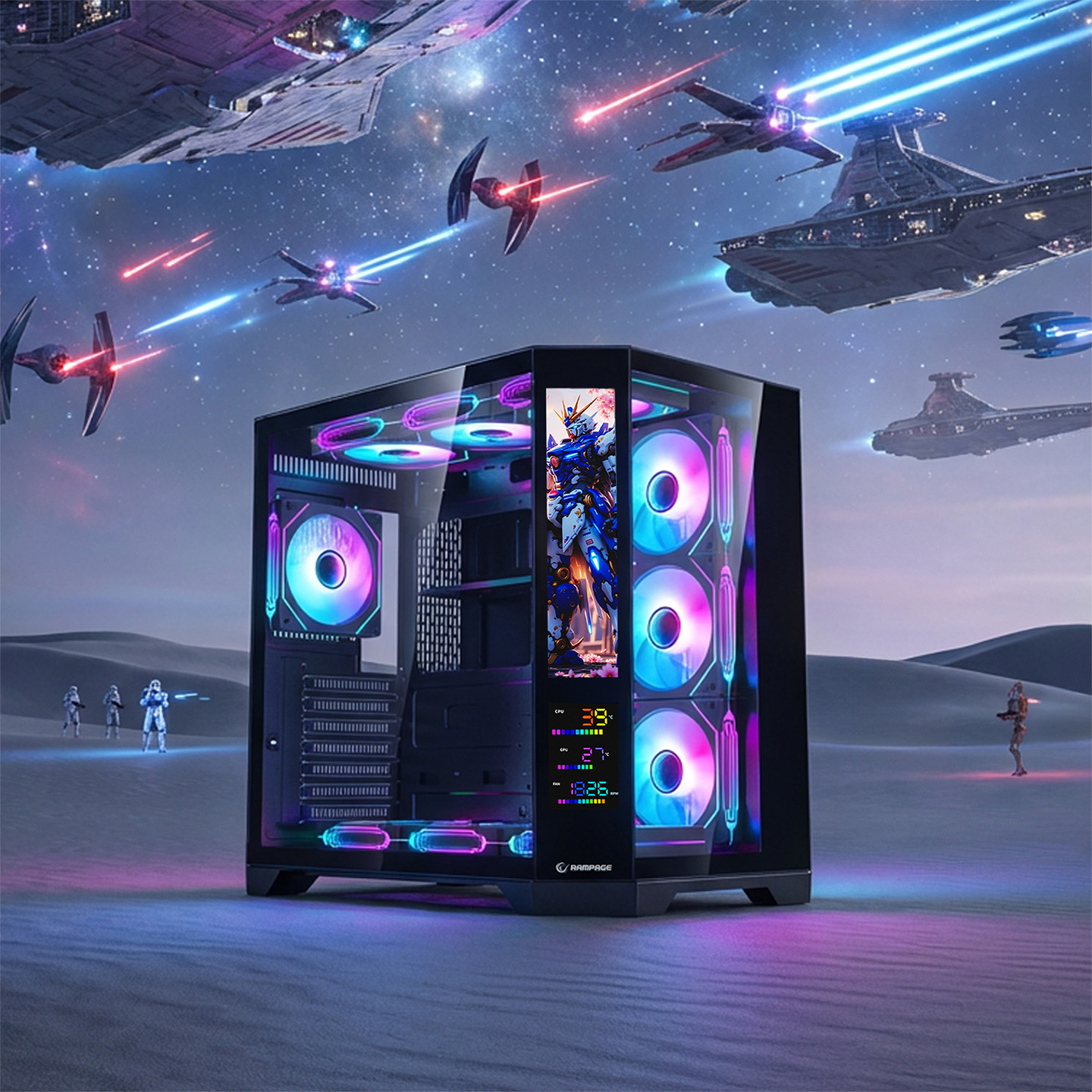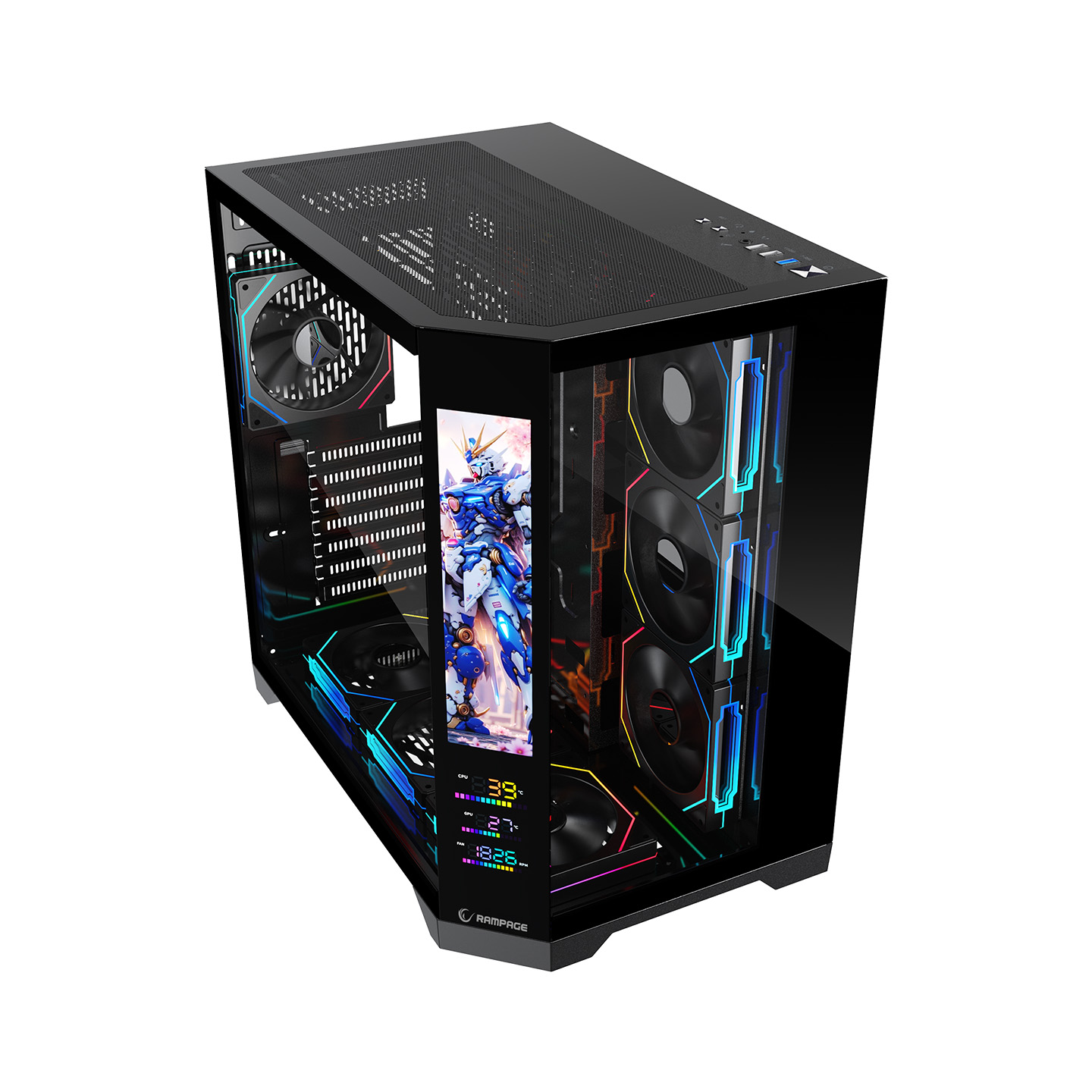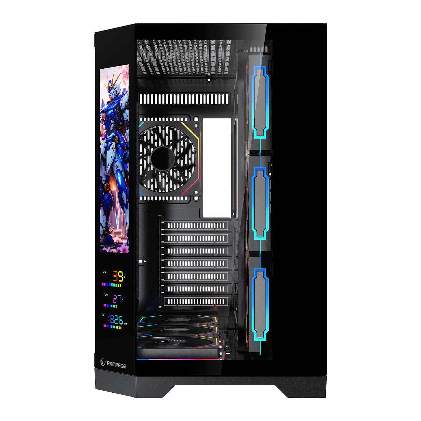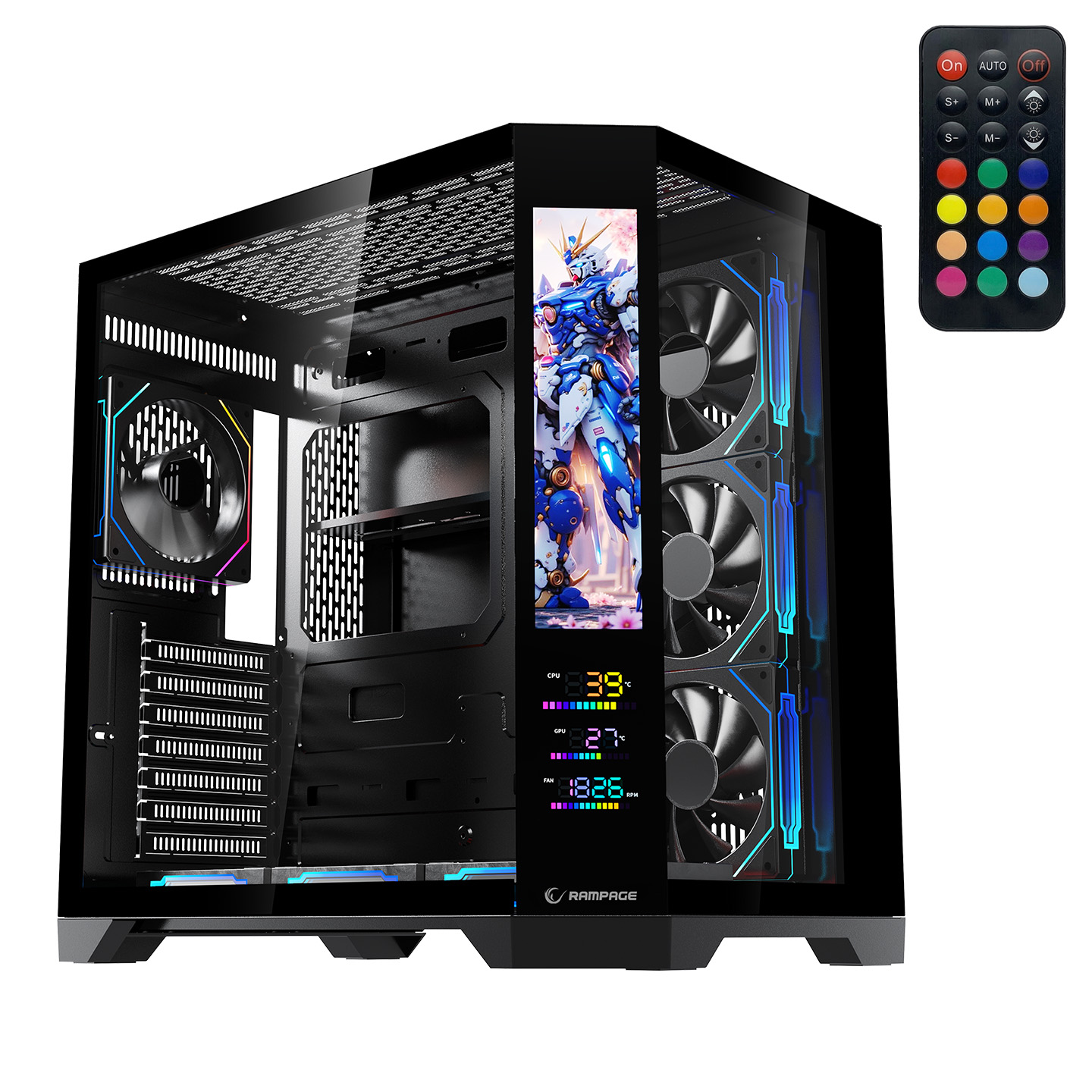 Rampage NOVA V2 9.16 Lcd Ekranlı Hub+Kumanda Siyah 7x12cm ARGB Pwm Fan Gaming Oyuncu Kasası