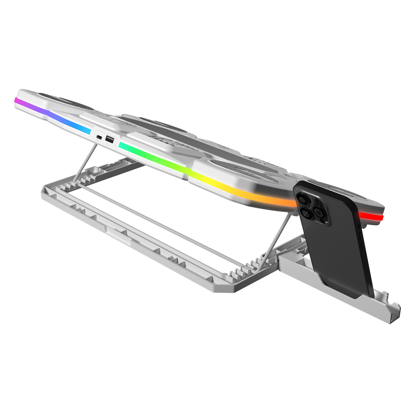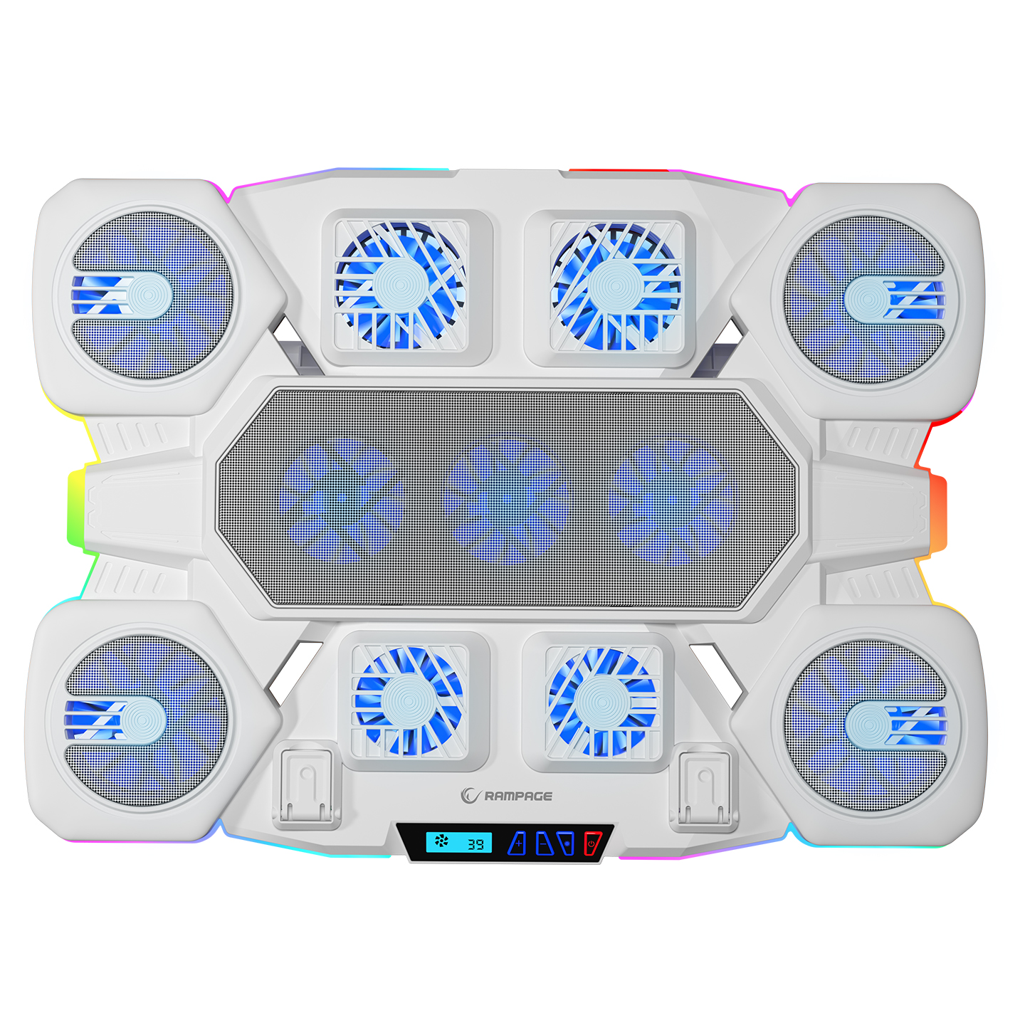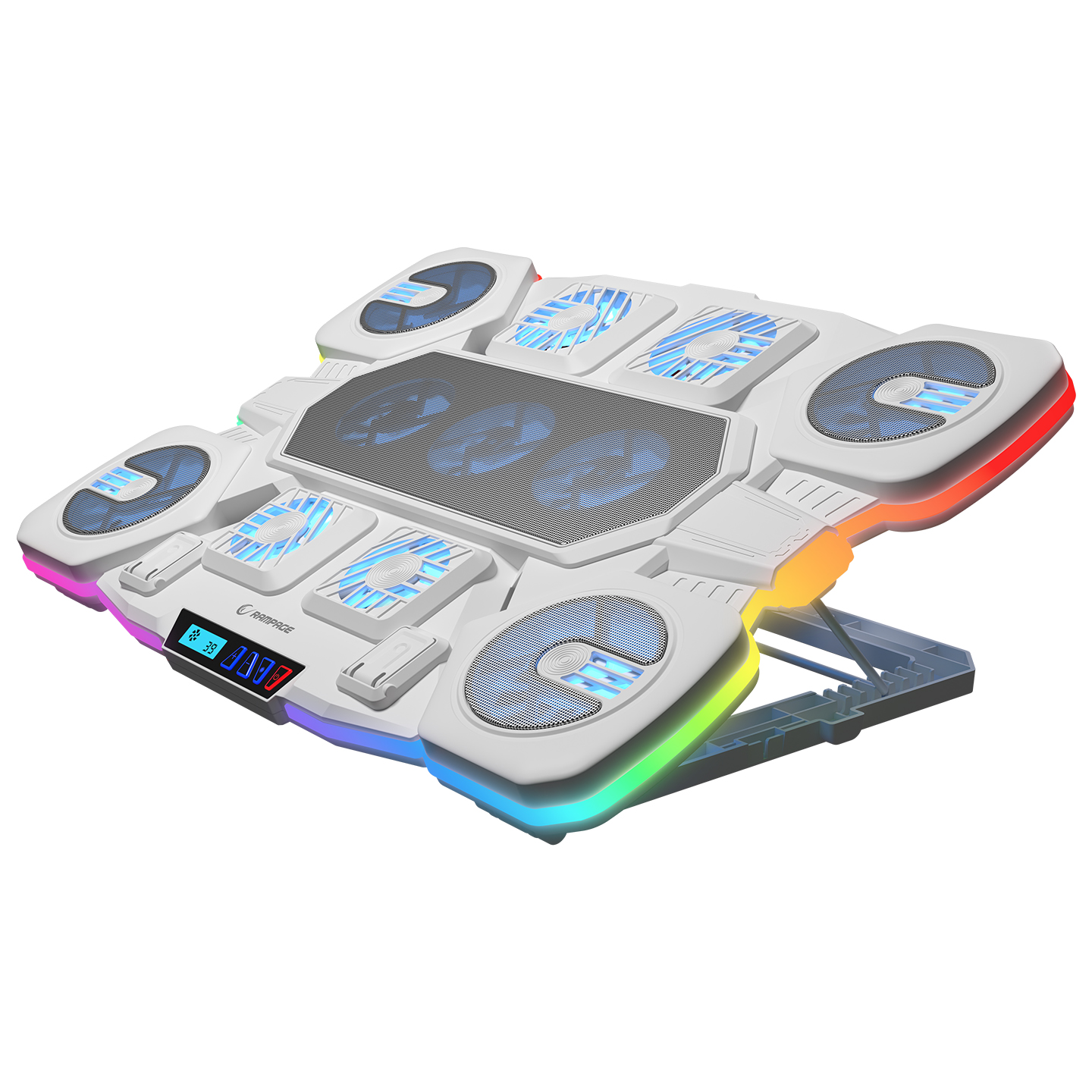 Rampage S50 Glacier Beyaz RGB Işıklı 11 Fanlı LCD Göstergeli 1 Type C 1 Usb Girişli Yükselebilen Notebook Soğutucu