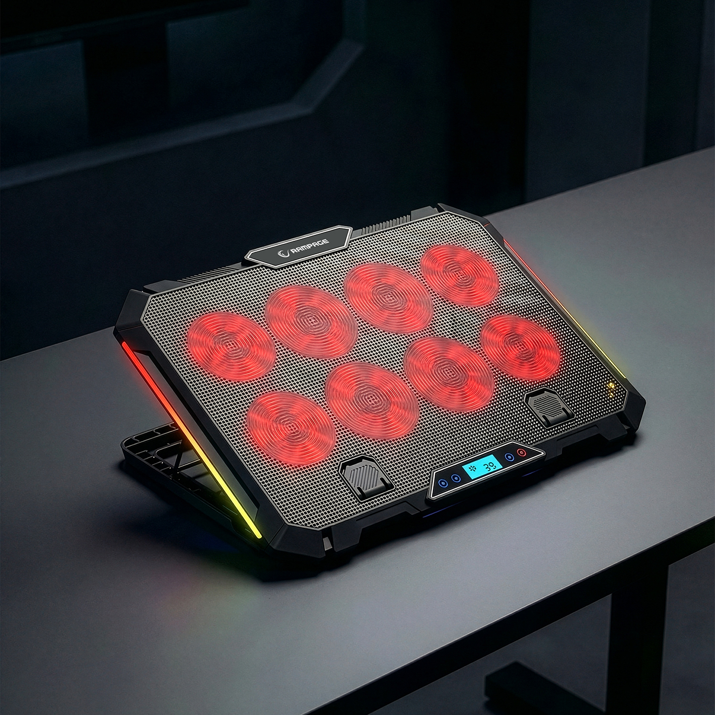 Rampage S51 Icevolt Siyah RGB Işıklı 8 Fanlı LCD Göstergeli 17 ve Altı 2 Usb Girişli Yükselebilen Notebook Soğutucu