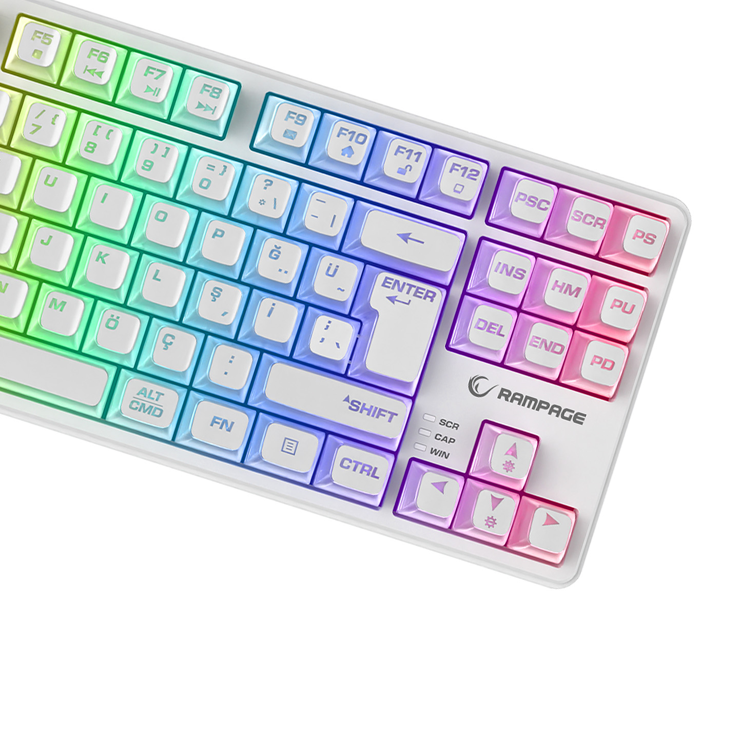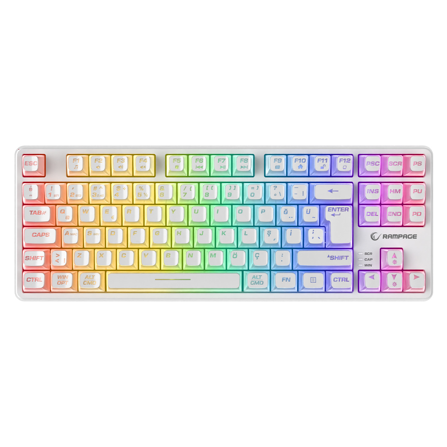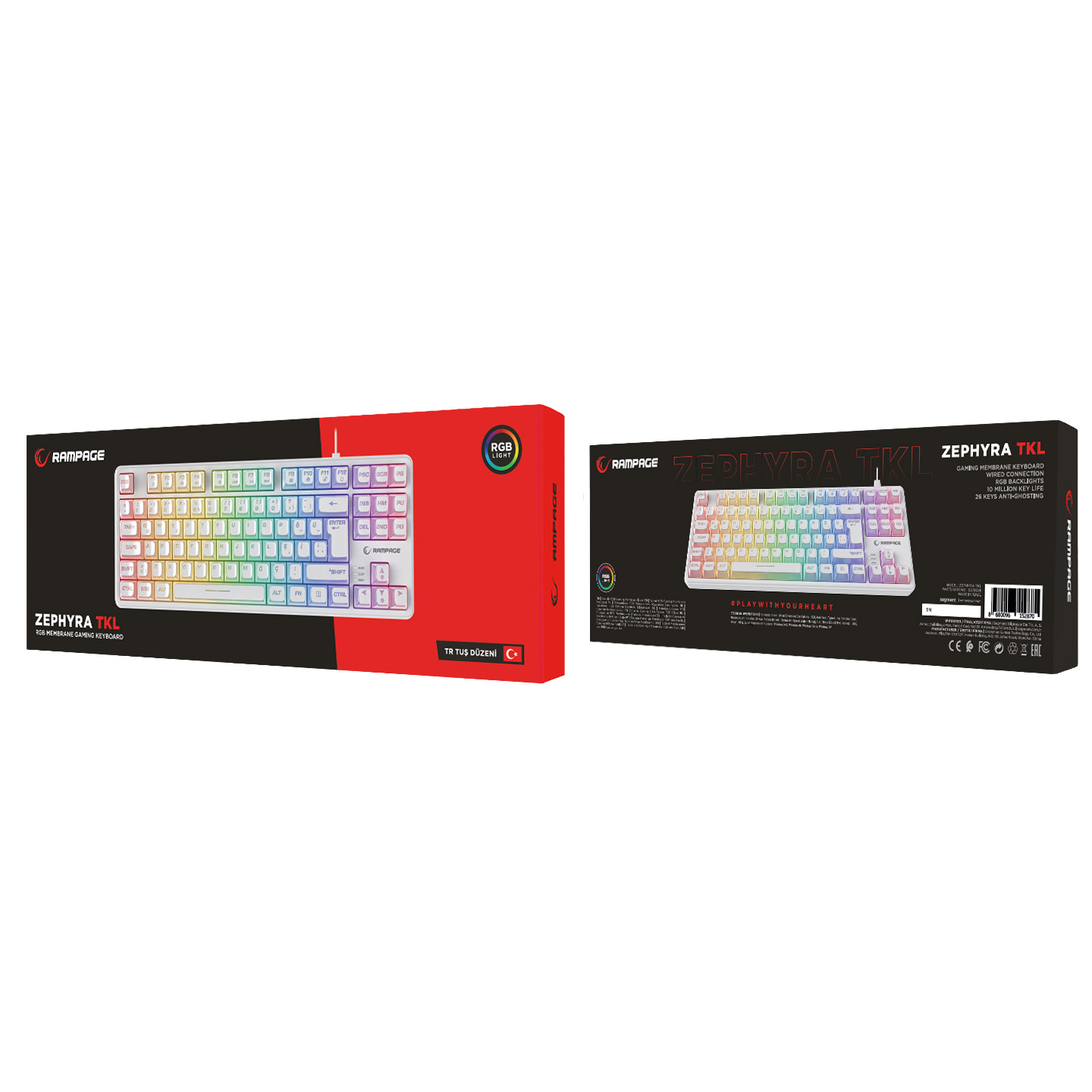 Rampage ZEPHYRA TKL Beyaz RGB US Q Sessiz Membrane Oyuncu Klavyesi