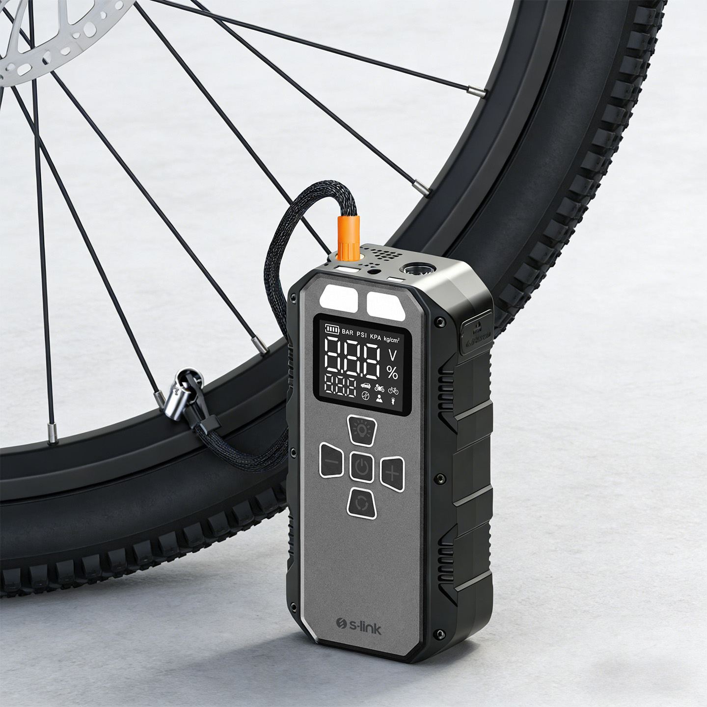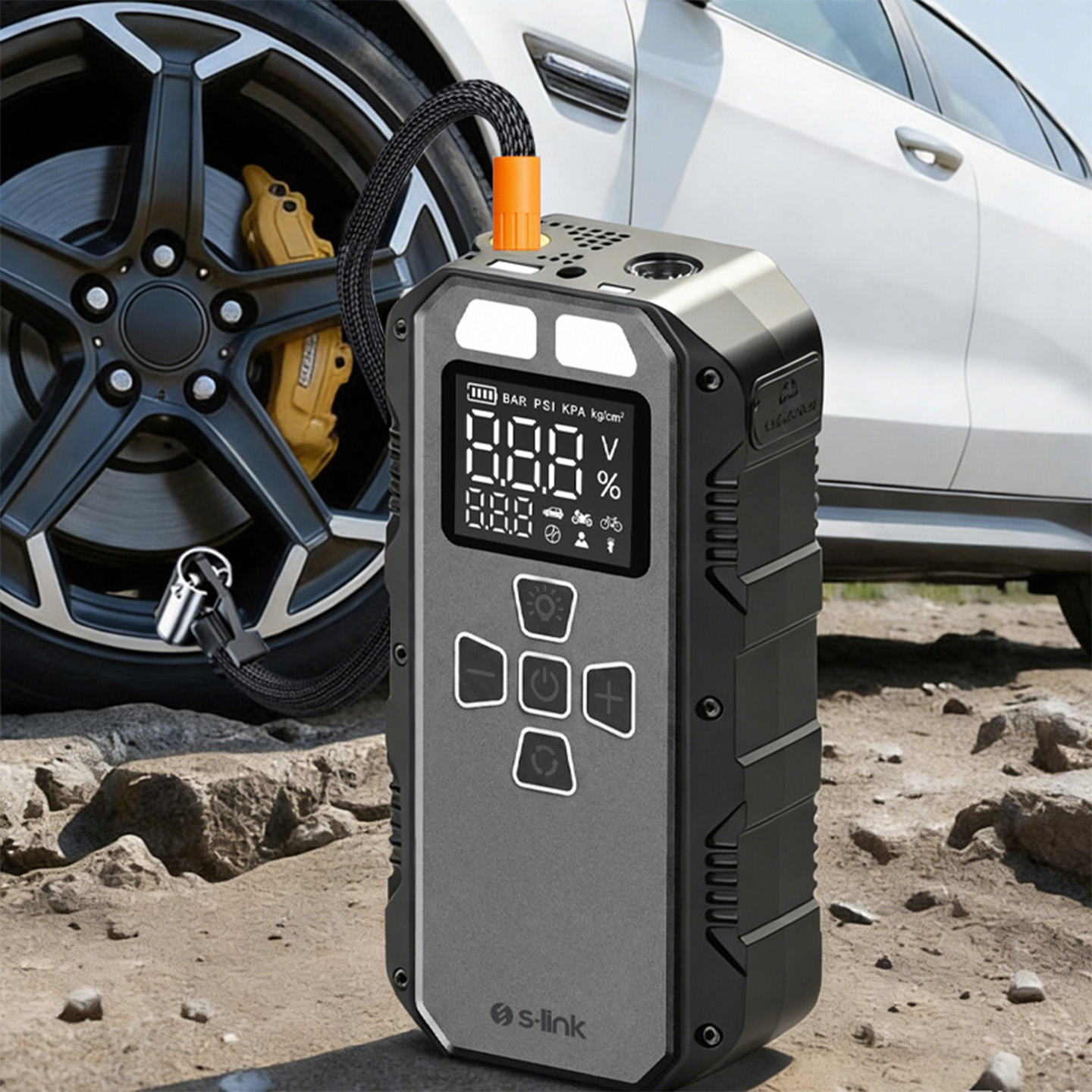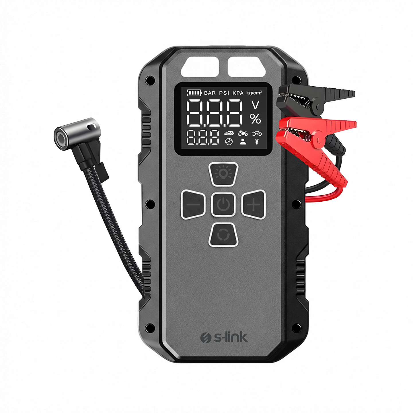 S-Link AKT2027 Koyu Gri 8000mAh 150 Psi 4 in1 Powerbank+ LED Işık Lastik Sisirme Ve Akü Takviye cihazı