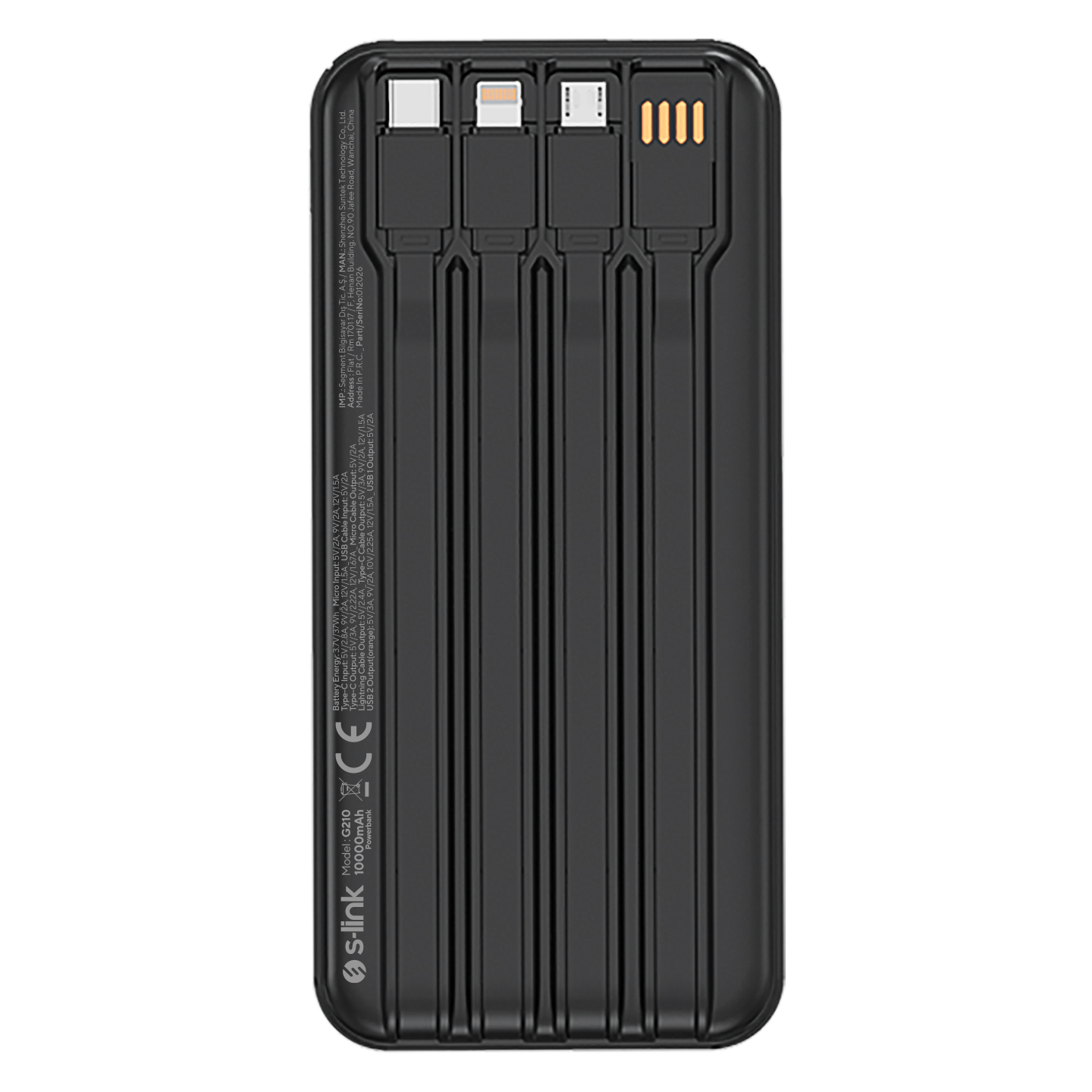 S-link IP-G210 10000mAh PD20W+QC3.0 Dahili Kablolu Siyah LCD Taşınabilir Pil Şarj Cihazı Powerbank