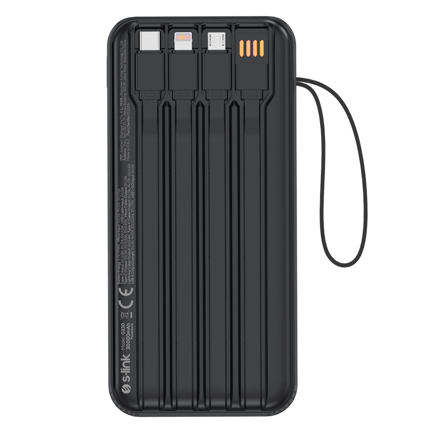 S-link IP-G230 30000mAh PD20W+QC3.0 Dahili Kablolu Siyah LCD Taşınabilir Pil Şarj Cihazı Powerbank