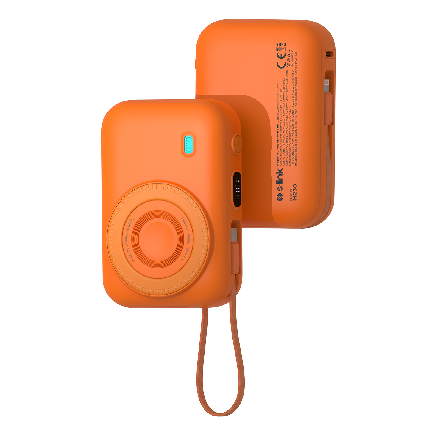 S-link M230 20000mAh PD22.5W 15W Magsafe+Watch+Airpods Turuncu LCD Taşınabilir Pil Şarj Cihazı Powerbank