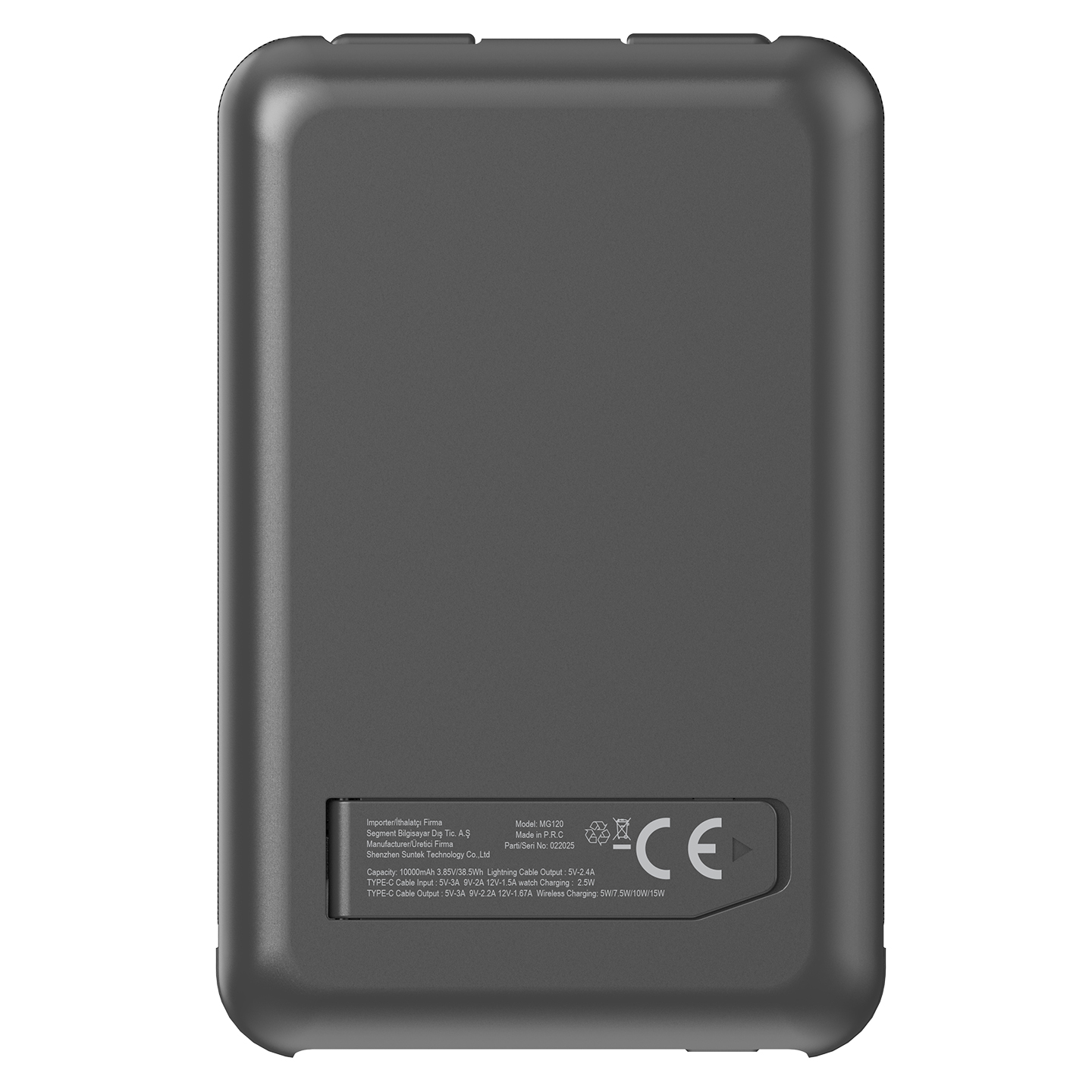 S-link MG120 10000mAh PD20W + QC3.0 18W 15W Magsafe + Watch Gri LCD Taşınabilir Pil Şarj Cihazı Powerbank