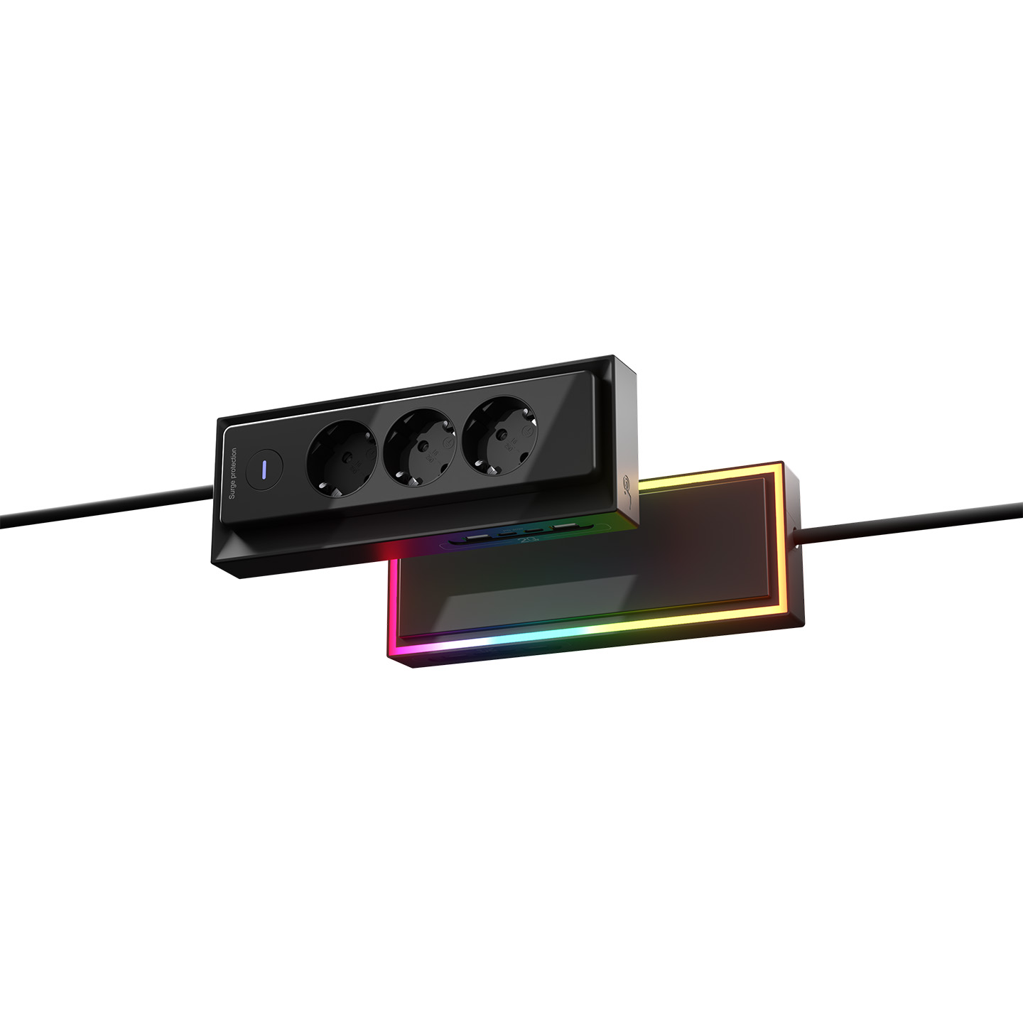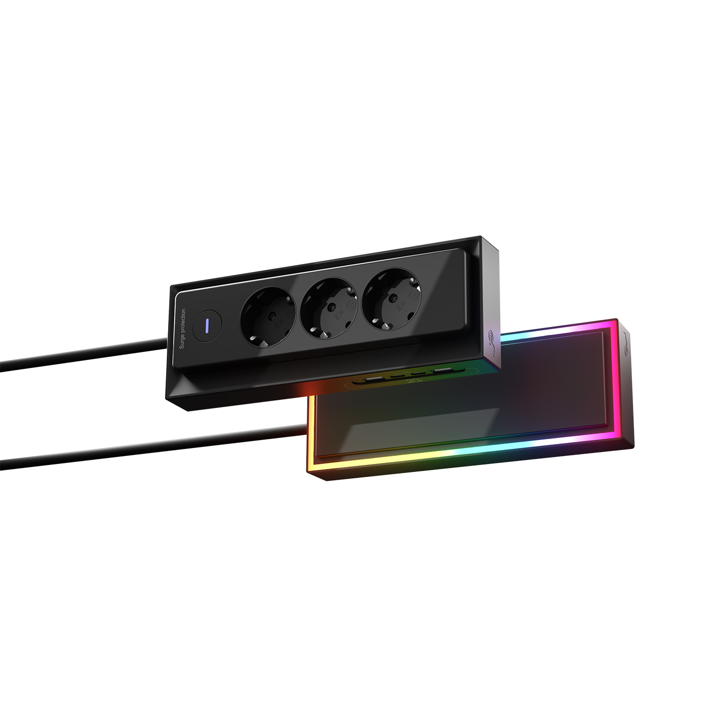 S-link PRZ05 3 Soketli 2 USB 2 Type-C PD20 2M 306 Joule Tam Bakır Gaming Siyah Akım Korumalı Priz