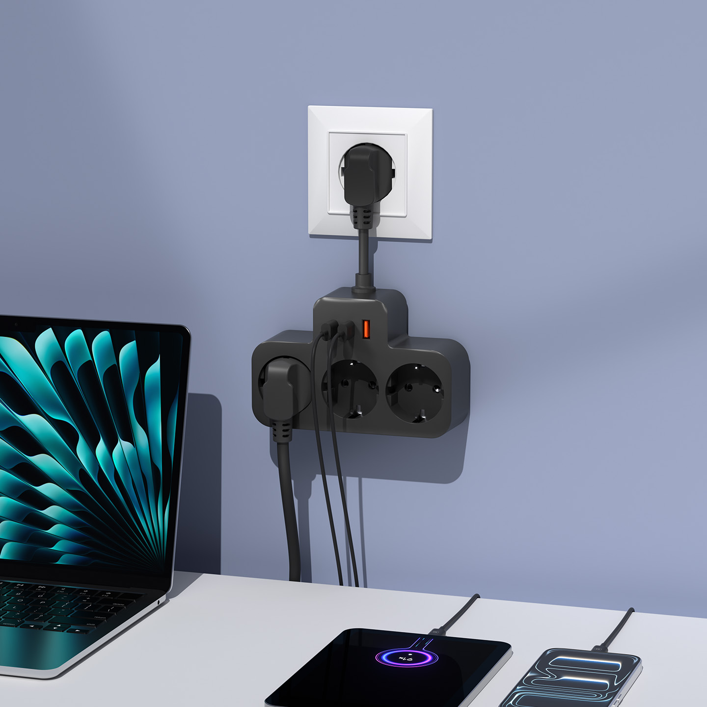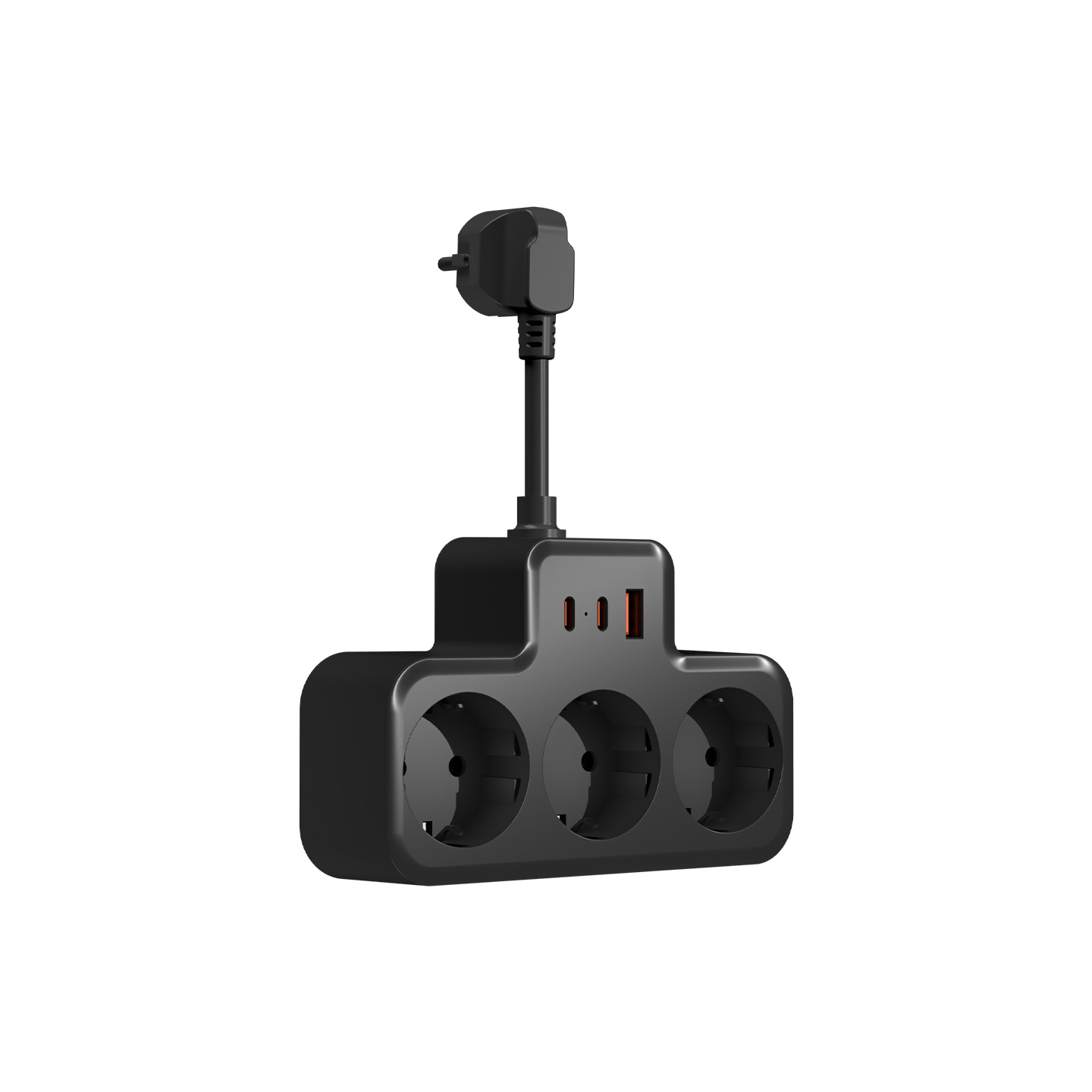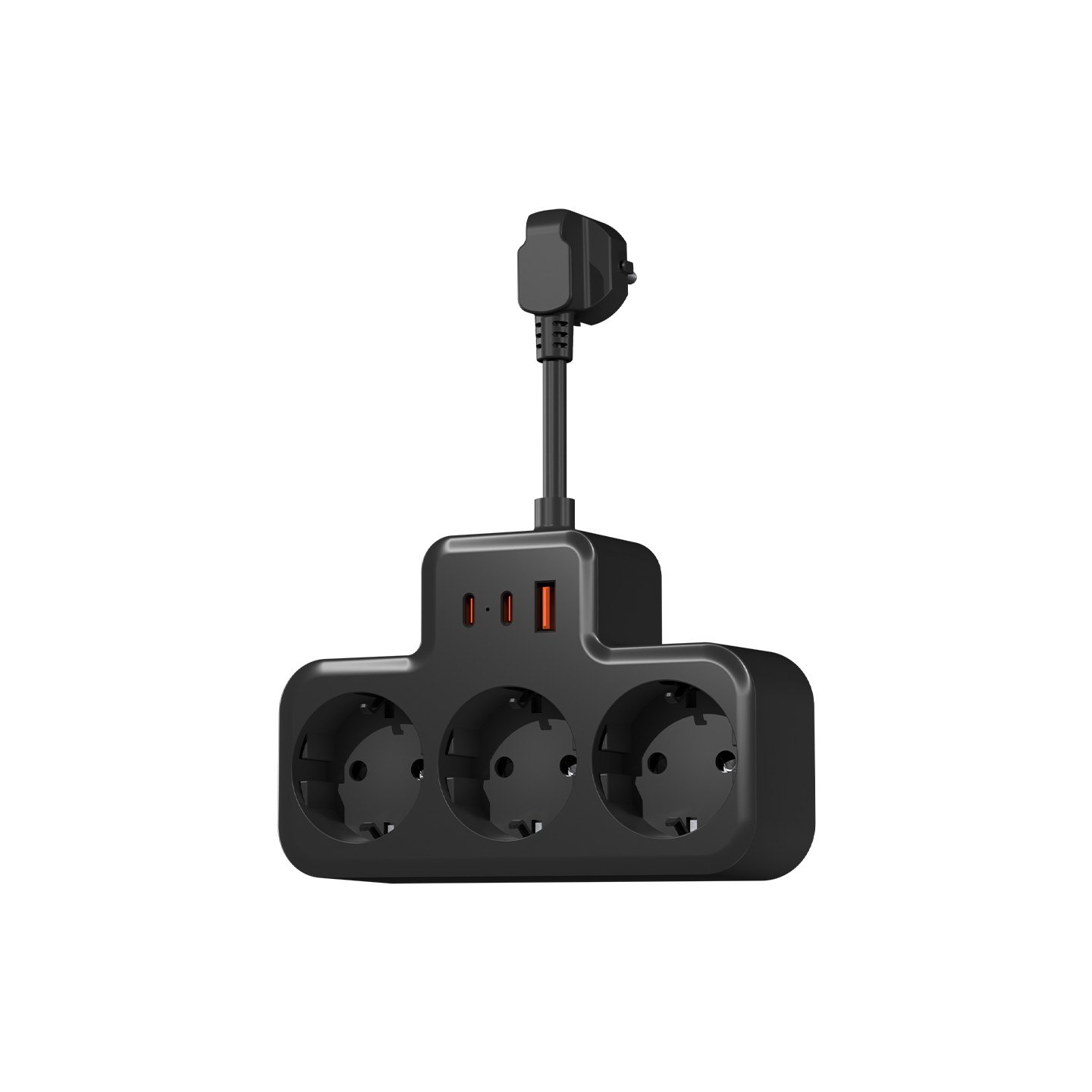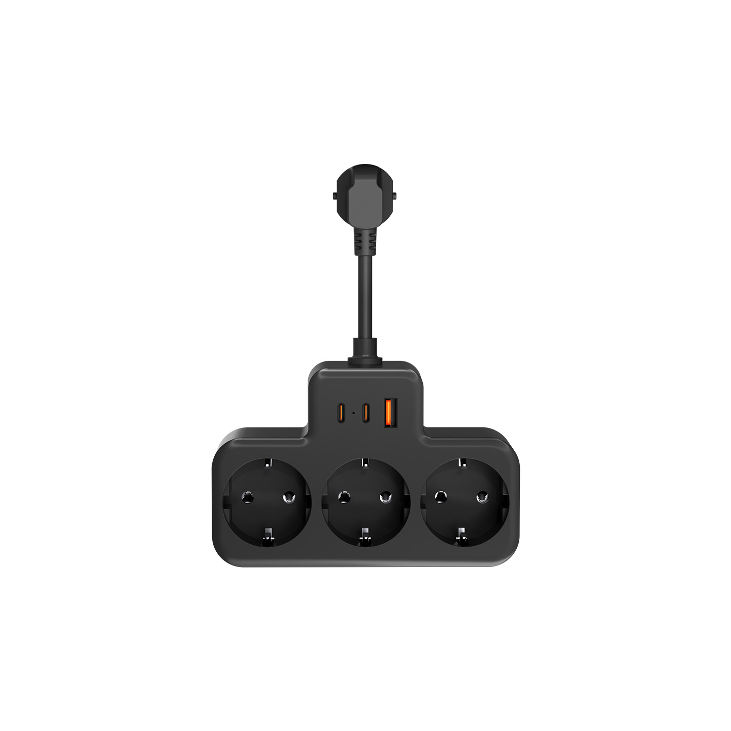 S-link PRZ07 Siyah 3 Soketli 15cm 1 USB 2 Type-C PD20W 1050 Joule Tam Bakır Kablolu Akım Korumalı Priz