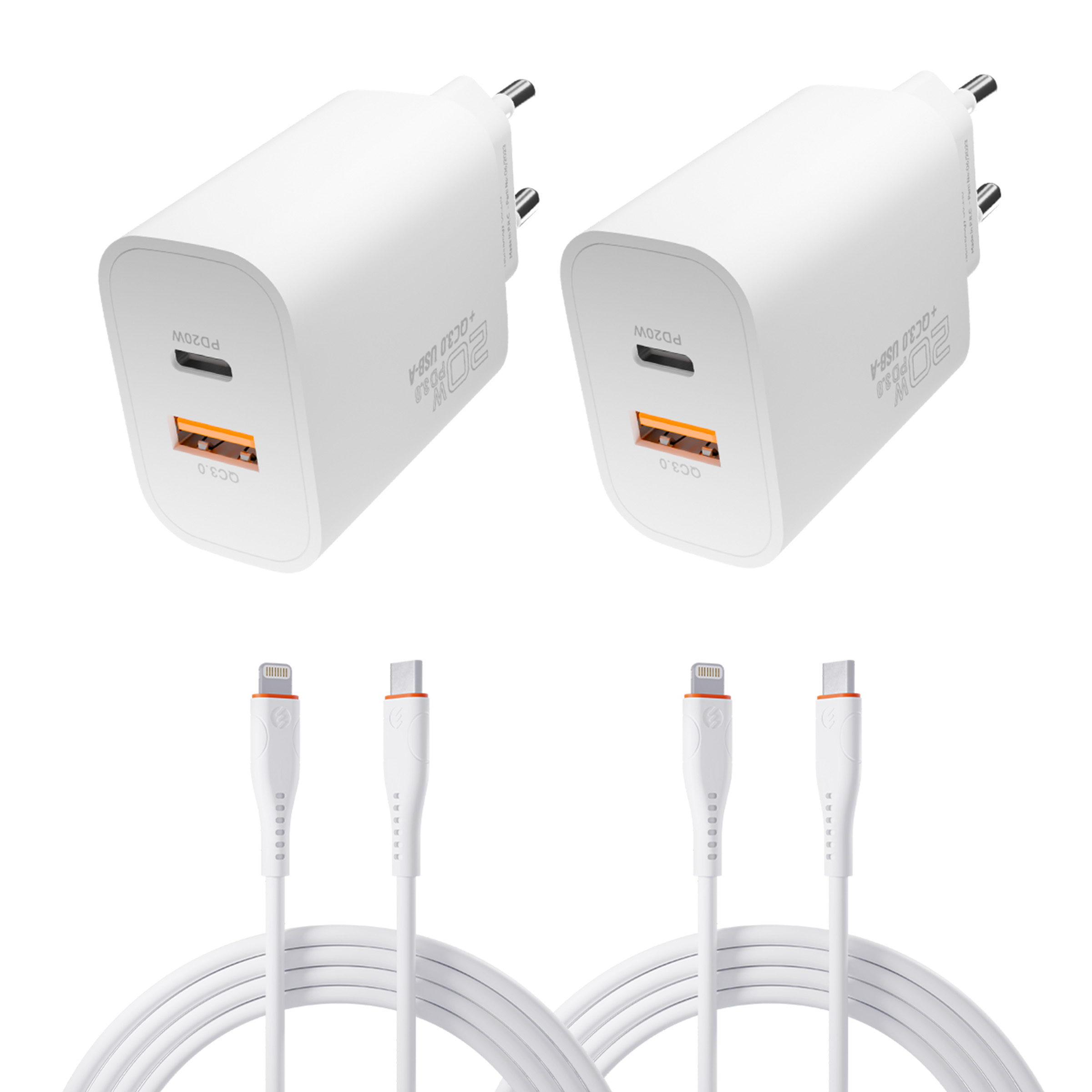 S-link S-Link 20W Çift Portlu USB-C + USB-A Hızlı Şarj Cihazı + 1 Metre Type-C to iPhone Lightning Kablo (2’li Set: 2 Ad