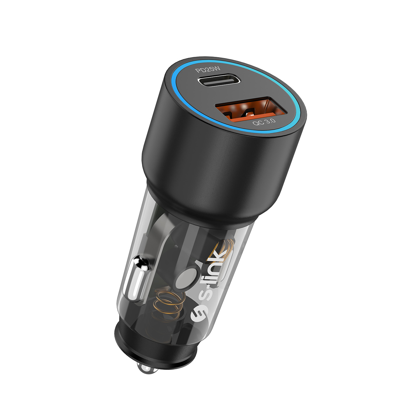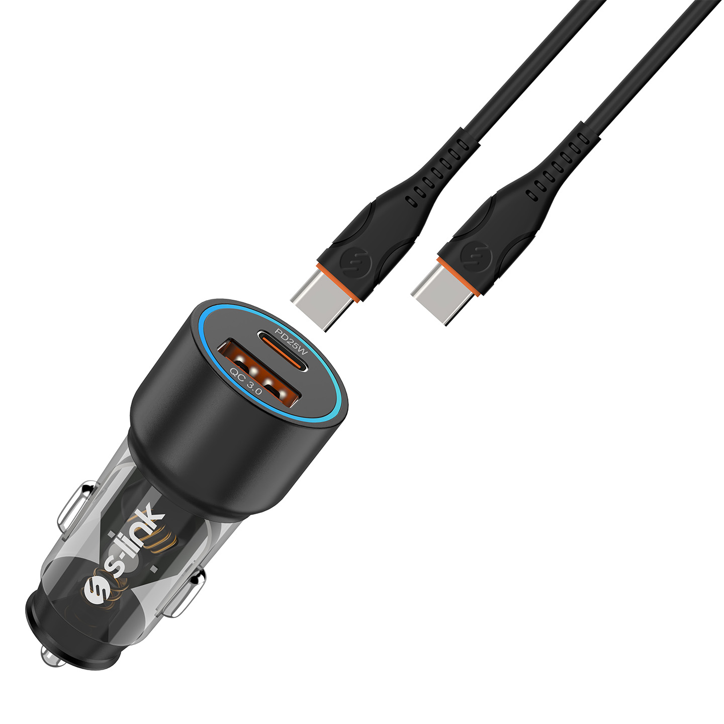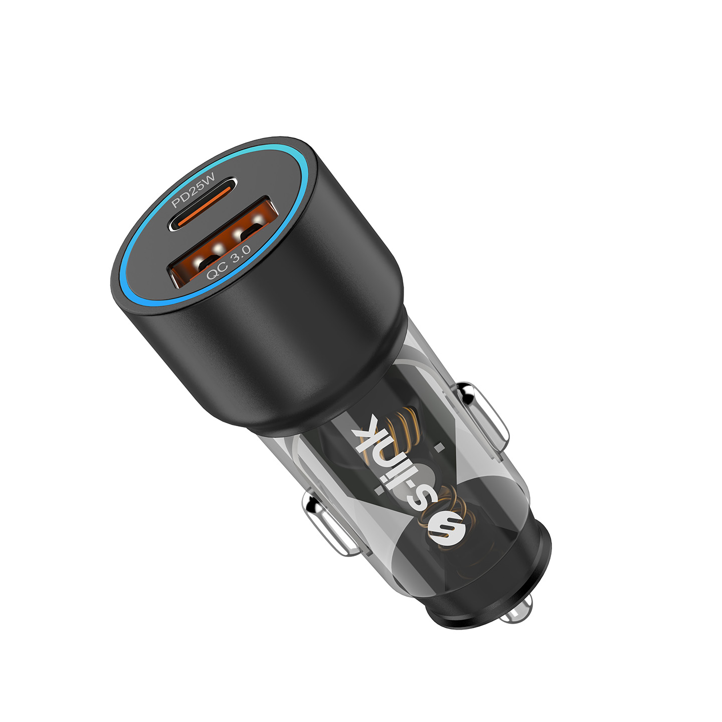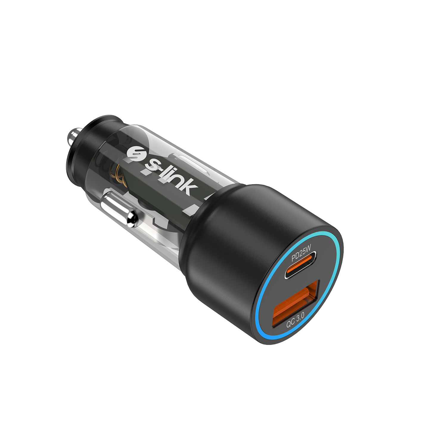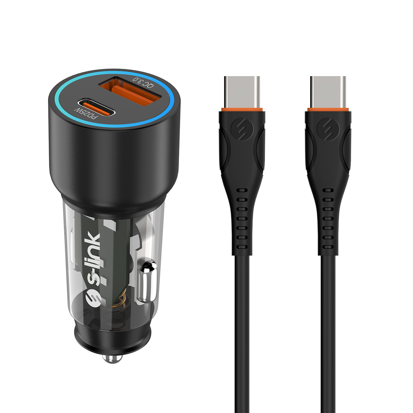 S-link SL-AC43TP TypeC to TypeC Kablolu 43W PD 25W + QC3.0 18W Siyah Araç Şarj Cihazı